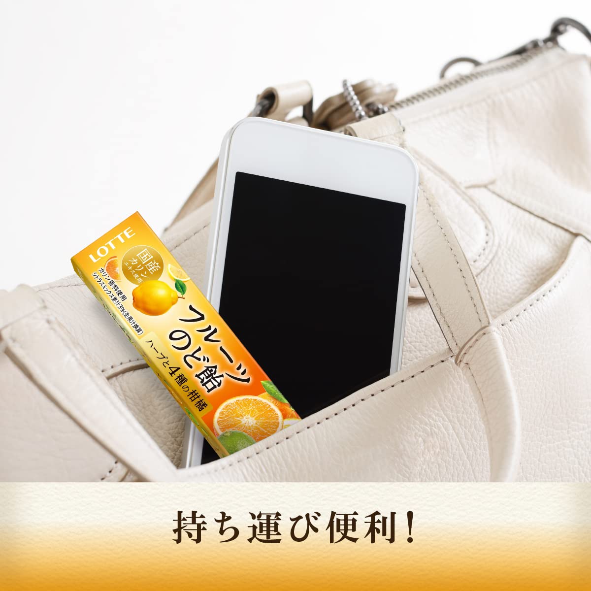 カリンエキスを配合したロッテ「フルーツのど飴」。ビタミンCを配合し、オレンジの爽やかな味わいと心地よい清涼感が口の中に広がりスッキリした気分をもたらしてくれます。カリンとハーブで優しくのどを癒しながら爽やかなオレンジの味わいも楽しめるロッテ「フルーツのど飴」。ビタミンCを配合しているので日頃から身近に備えておくことで、いざという時に自分を守りベストな状態を保つことができます。