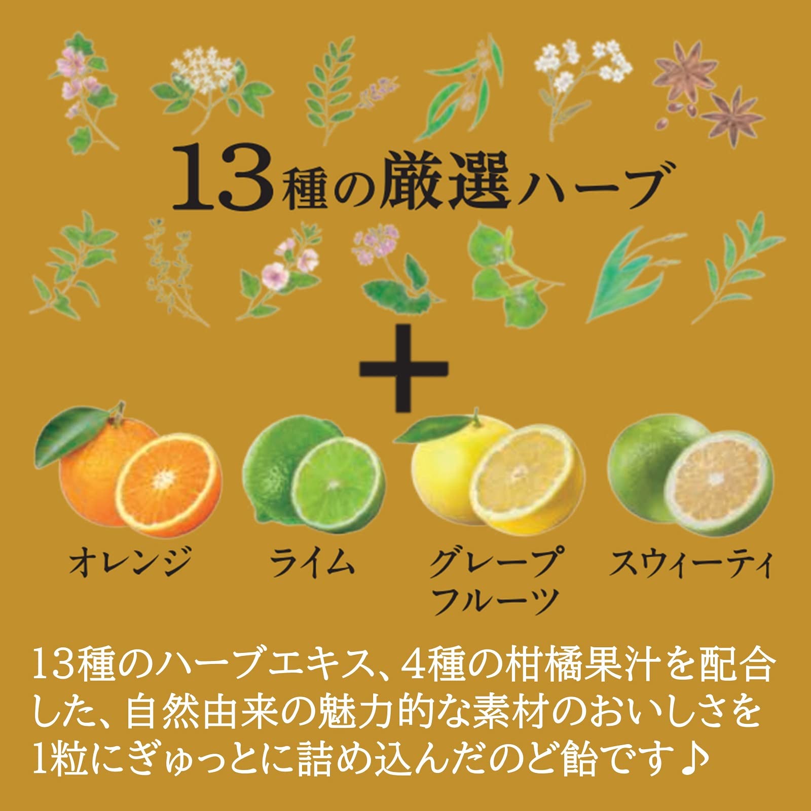 砂糖(国内製造)、水あめ、ハーブエキス、濃縮シトラスミックス果汁(オレンジを含む)、カリンエキス/酸味料、香料、アナトー色素