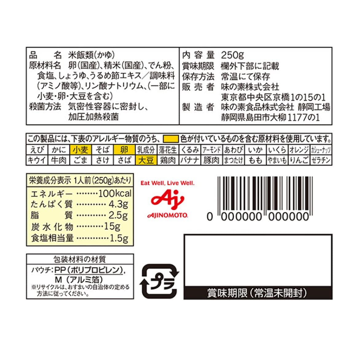 味の素 玉子がゆ 250g×9個