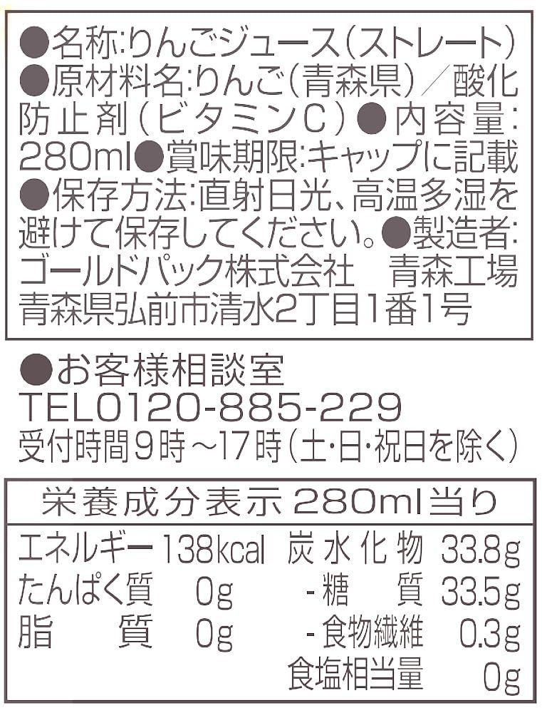 ゴールドパック 青森りんご ストレート果汁 280ml ×24本