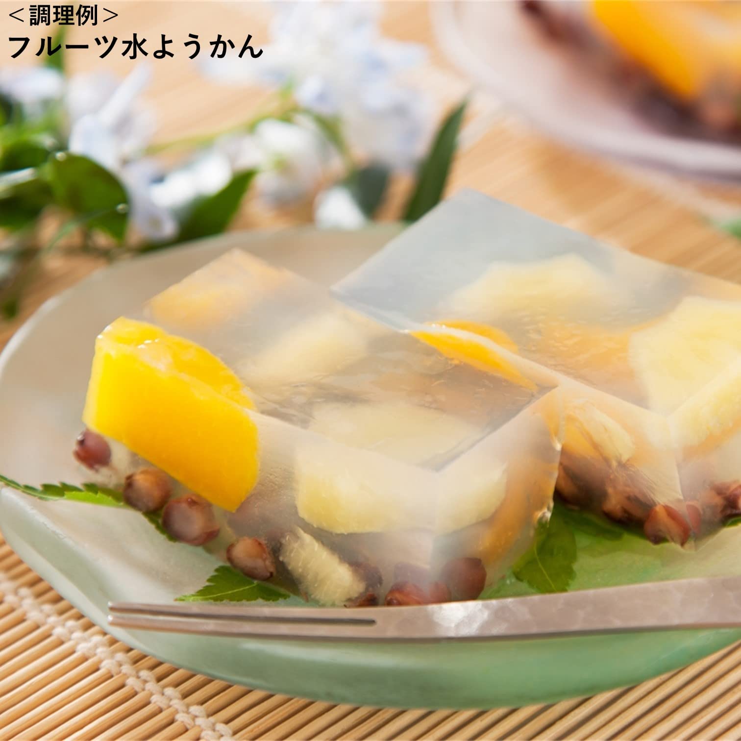 寒天(国内製造)、果実(黄もも、パインアップル、みかん)、糖類(ぶどう糖果糖液糖、ぶどう糖、ガラクトオリゴ糖)、赤えんどう / クエン酸、ゲル化剤(増粘多糖類)、乳酸Ca、香料、甘味料(スクラロース、アセスルファムK)、着色料(カロチン)