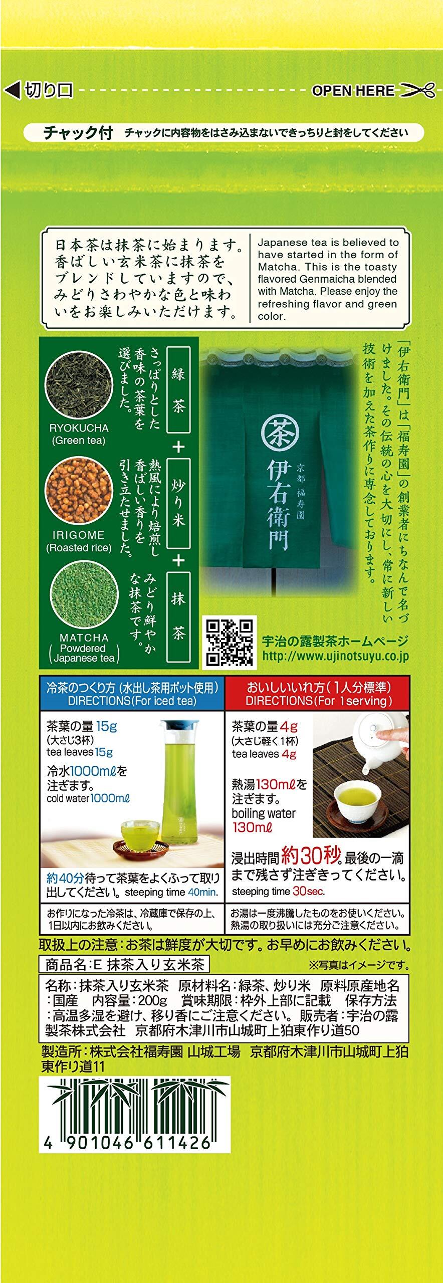 「伊右衛門 抹茶入り玄米茶 200g」は、みどりさわやかな抹茶入り玄米茶です。香ばしい玄米茶に石臼挽き抹茶をブレンドしました。さわやかな色と味わいをお楽しみいただけます。