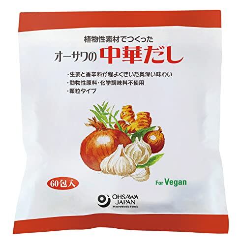 ■植物性素材でつくった中華だしの素 ■生姜と香辛料が程よくきいた奥深い味わい ■国産野菜を使用 ■顆粒タイプ ■砂糖・動物性原料不使用 ■化学調味料不使用 ■中華スープ、野菜炒め、チャーハンなどさまざまな料理に ■1包で2~3人分 原材料・成分 食塩(国内製造)、甘藷でん粉、メープルシュガー、しょうゆ(大豆・小麦を含む)たまねぎパウダー、酵母エキス、野菜エキス(にんじん、たまねぎ、白菜、セロリ、まいたけ)、しょうがパウダー、ホワイトペッパー、にんにくパウダー 使用方法 チャーハン、野菜炒め、餃子、麻婆豆腐などのベースにお使いください。《1包5gのご使用目安》チャーハン…2人分、炒め物…2人分 ※スープの場合は1袋を200~300mlのお湯で溶かしてご使用ください。■ダマになりやすいので、スープなどに使用される際は、よく溶かしてお使いください。■塩味がついていますので、お好みにあわせて塩加減をしてください。■香辛料による浮遊物がみられますが品質には問題ありません。■開封後は高温多湿を避け、冷暗所に保存してください。 続きを見る