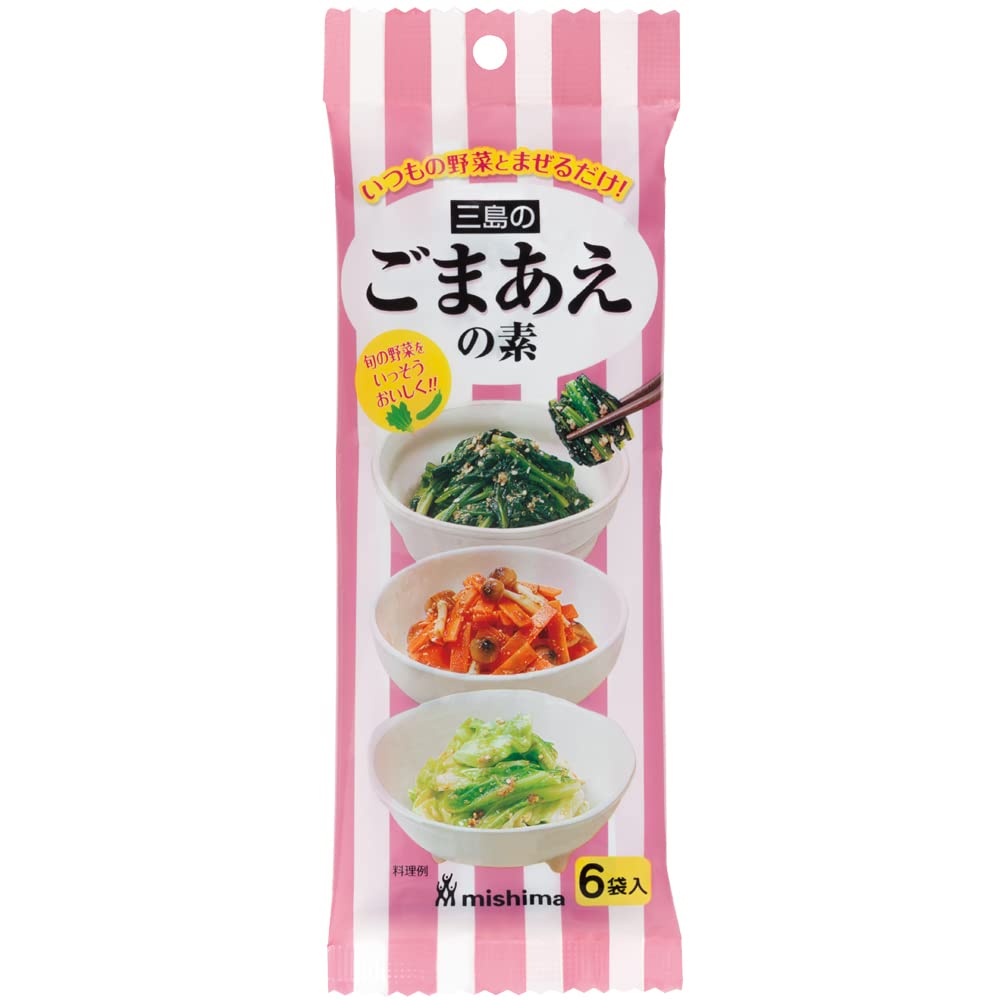 「三島食品 ごまあえの素」は、ゆでた野菜に混ぜるだけで手軽に"ごまあえ"ができあがる粉末調味料です。