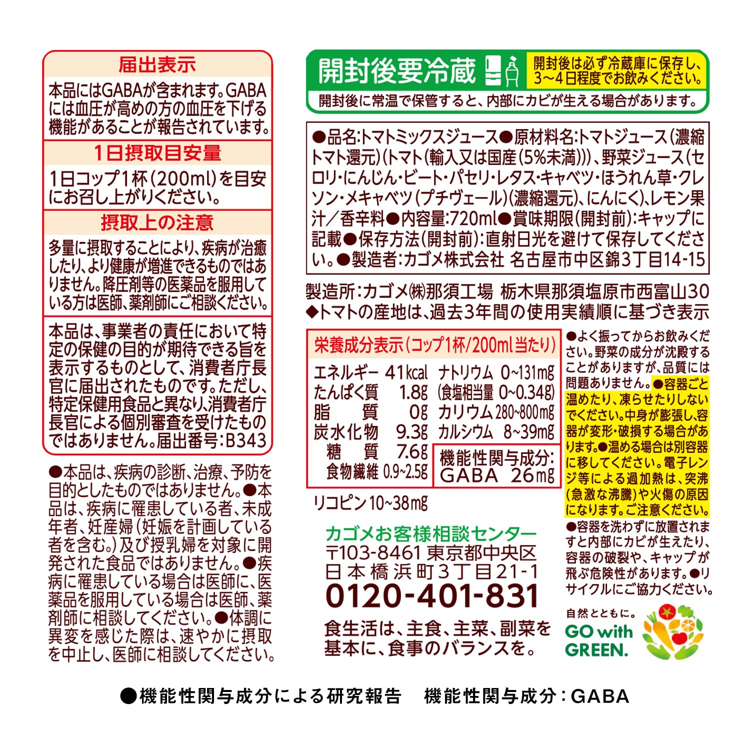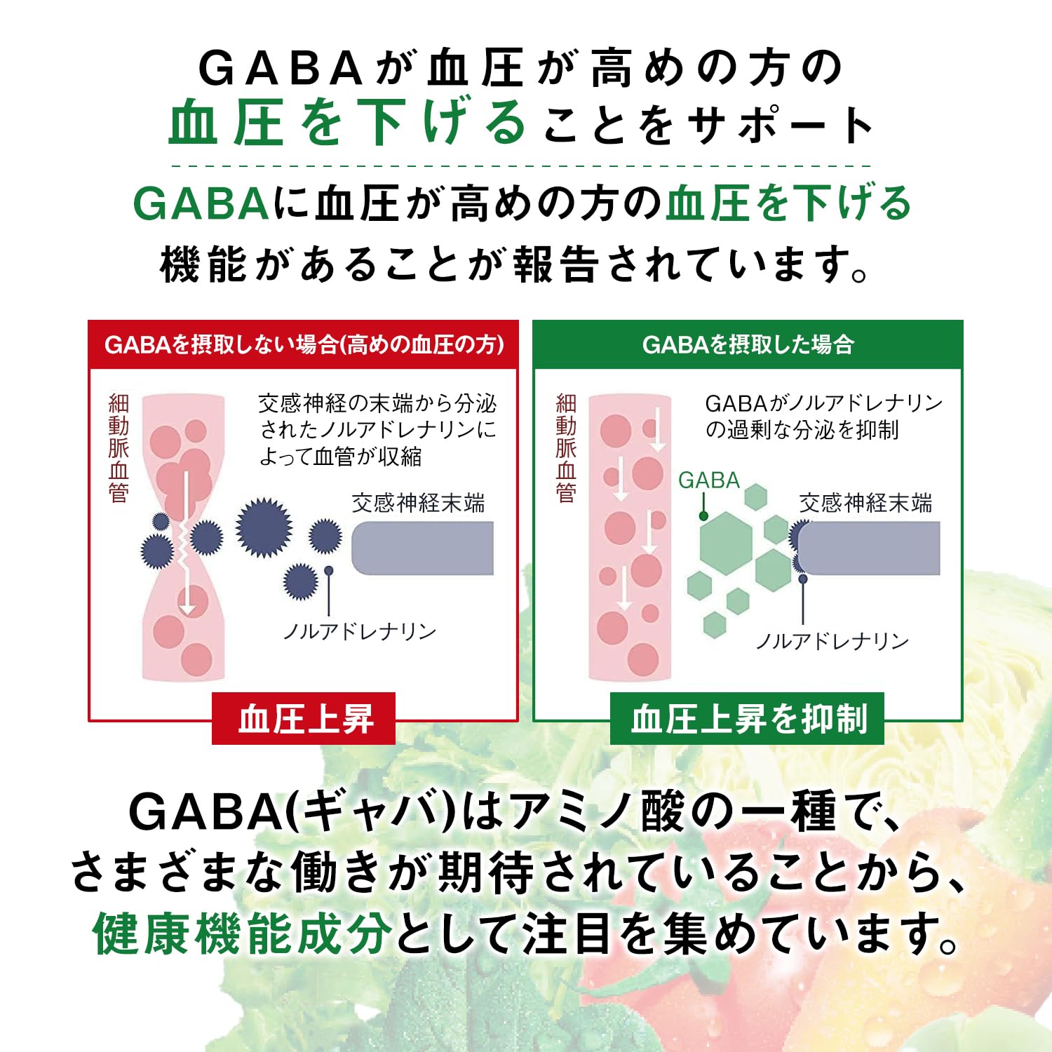 【届出表示】本品にはGABAが含まれます。GABAには血圧が高めの方の血圧を下げる機能があることが報告されています。