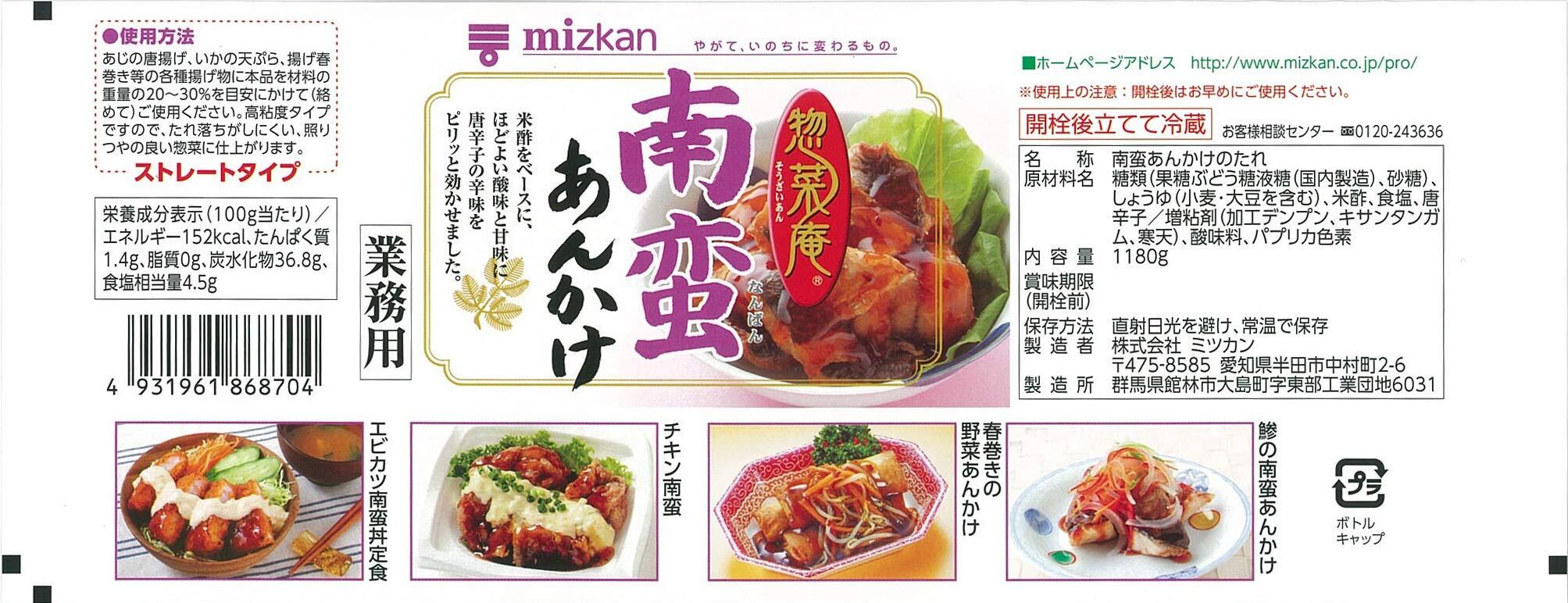 ミツカン 惣菜庵 南蛮あんかけ 1180g