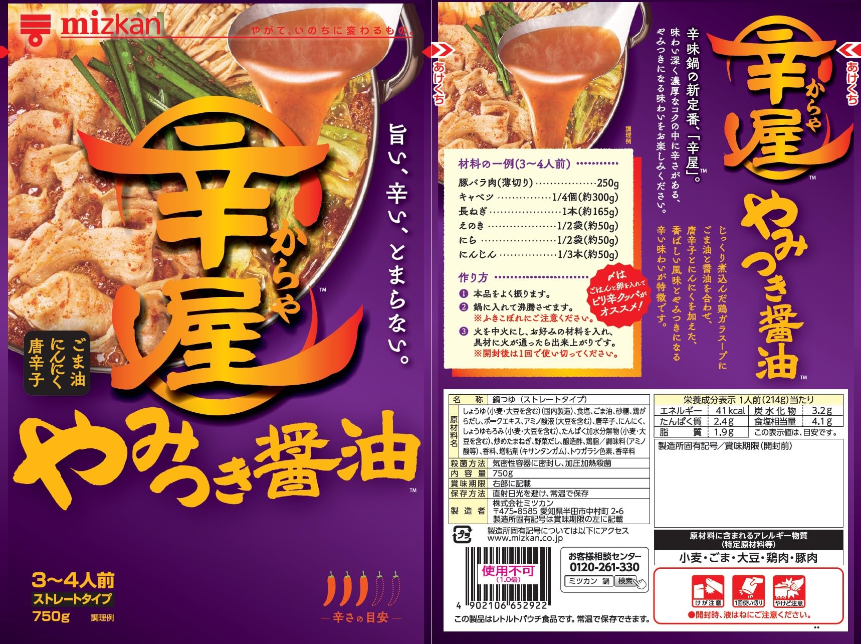 ミツカン 辛屋 やみつき醤油鍋つゆストレート 750g 〆鍋 鍋の素
