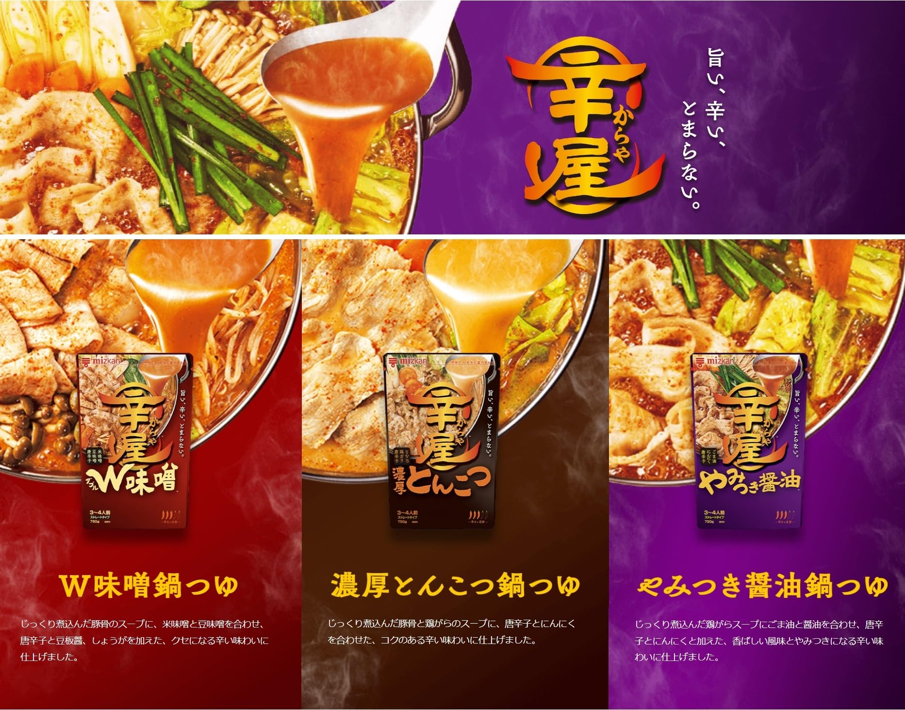 ミツカンの 辛み鍋つゆ ( 辛鍋 )シリーズ