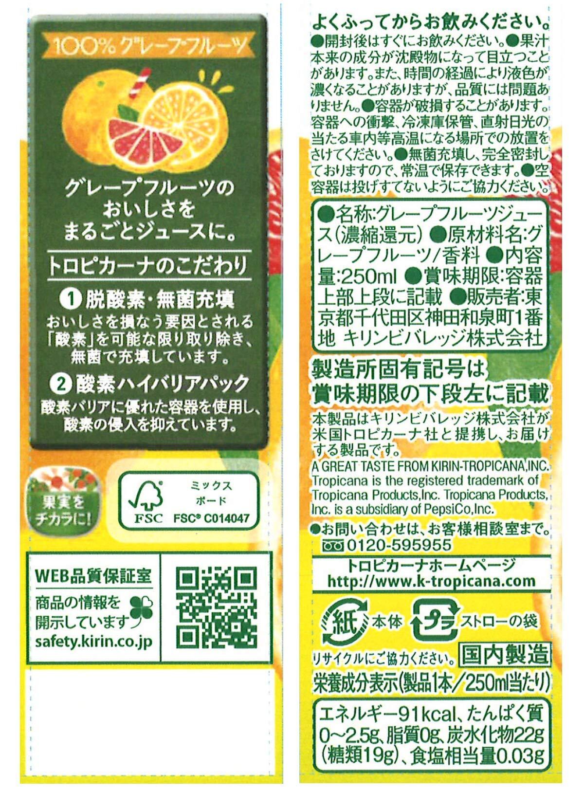 トロピカーナ 100% グレープフルーツ 250ml×24本