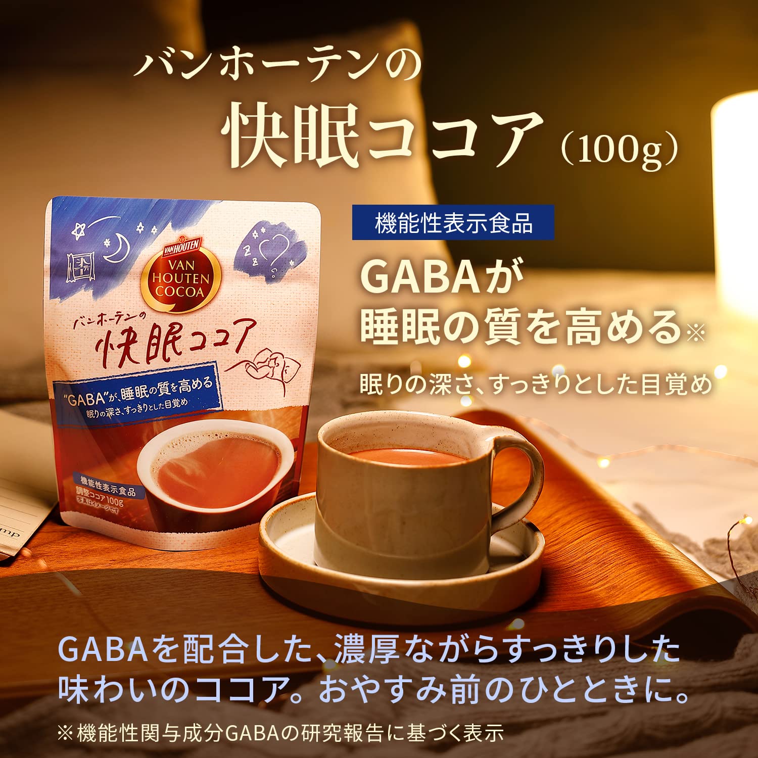 GABAは睡眠の質(眠りの深さ、すっきりとした目覚め)の改善に役立ちます。おやすみ前のひとときに。