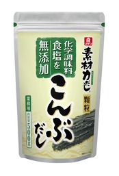 昆布エキス・昆布粉末のみ使用し、さらにまろやかな風味です。澄んだだし汁で、うどんや吸物もきれいに仕上がります。だし本来の風味を生かすため化学調味料と食塩を使用せず、風味豊かな顆粒状のだしを作りました。どなたでも簡単に、均一なだしをご使用いただけます。 原材料 風味原料(昆布エキス、昆布粉末)、デキストリン、糖類(麦芽糖、砂糖)、酵母エキス、でん粉、米油