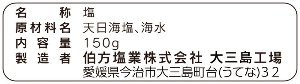 原材料:天日海塩(メキシコ又はオーストラリア)93%、海水(日本・愛媛県)7%