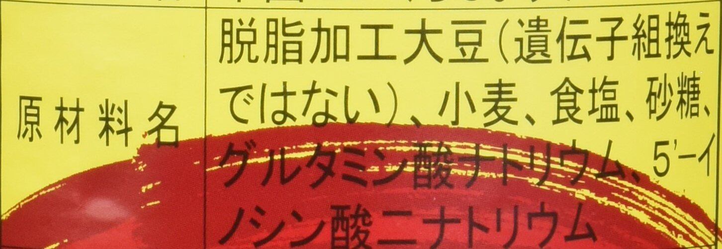 原材料:脱脂加工大豆、小麦、食塩、砂糖、グルタミン酸ナトリウム、7'-イノシンサ酸二ナトリウム