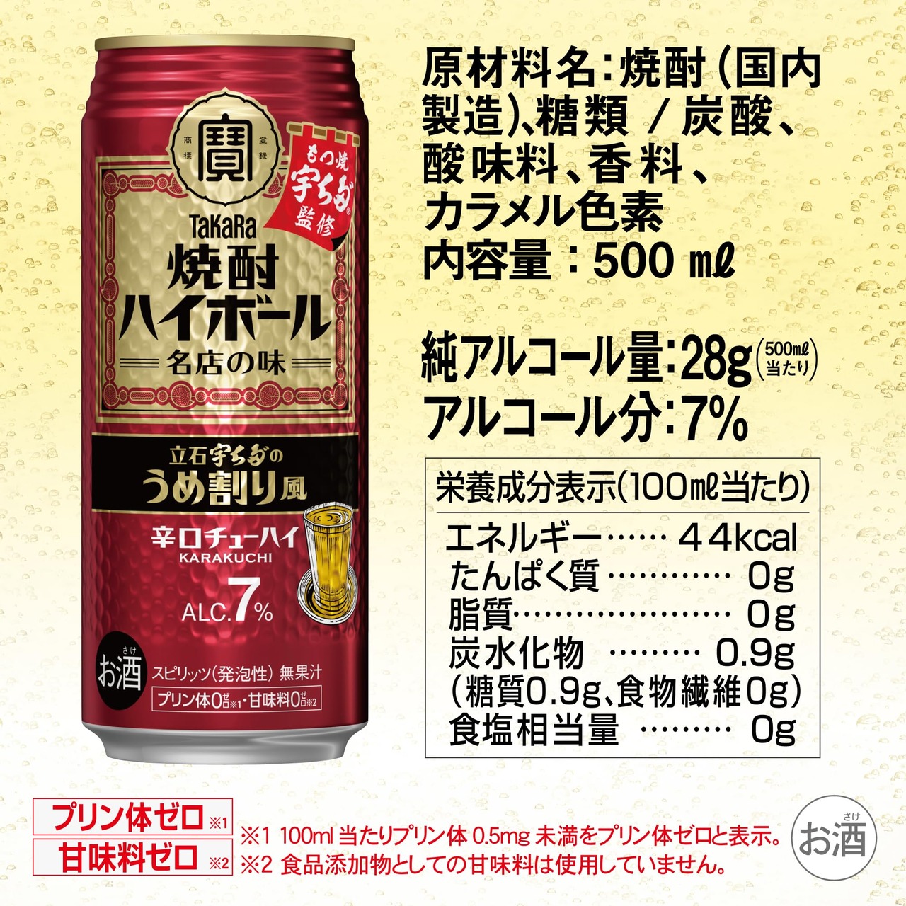 【下町名店とのコラボ/プリン体ゼロ 甘味料ゼロ】 タカラ 焼酎ハイボール 立石 宇ち多゛のうめ割り風 東京下町の立石にあるもつ焼きの名店 宇ち多 監修 [ チューハイ 500ml×24本 ]