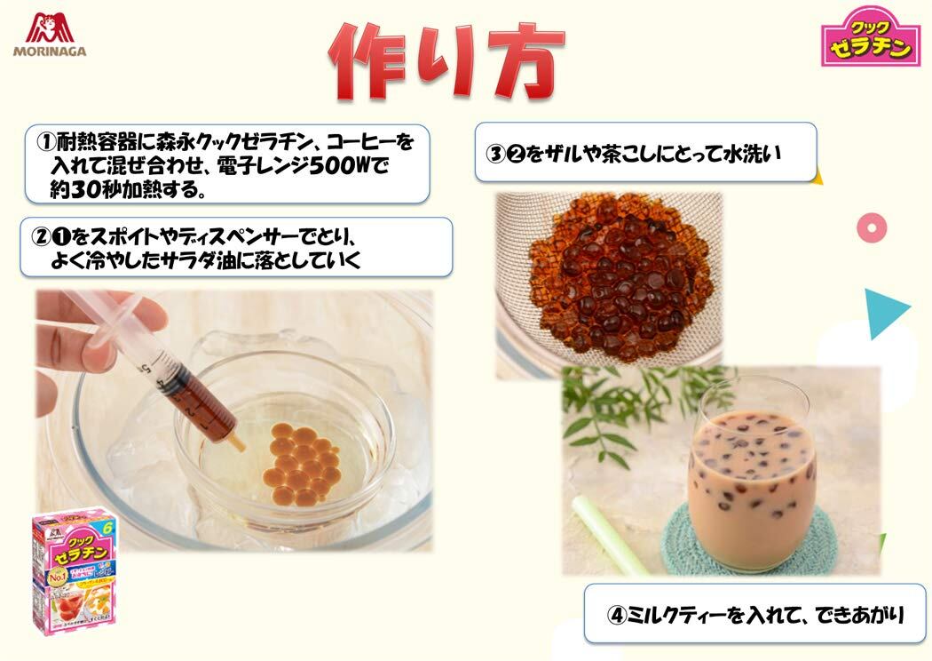 抜群の溶けやすさに加えて、固めたときの透明度や、型崩れしにくい保形性を実現! デザートやお料理を手軽においしくレベルアップします!