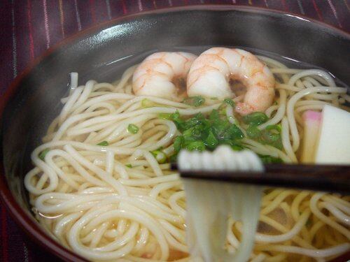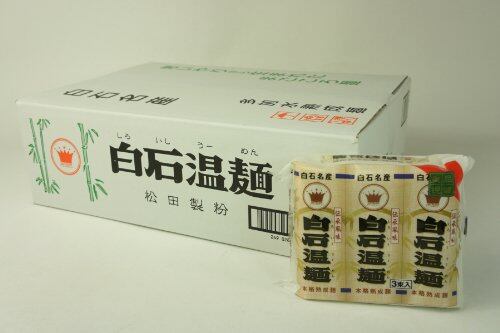白石温麺にわかめ粉末を加え、磯の風味がたっぷりの温麺で非常につるつるした食感で喉越ごしが良く食べやすい麺です。