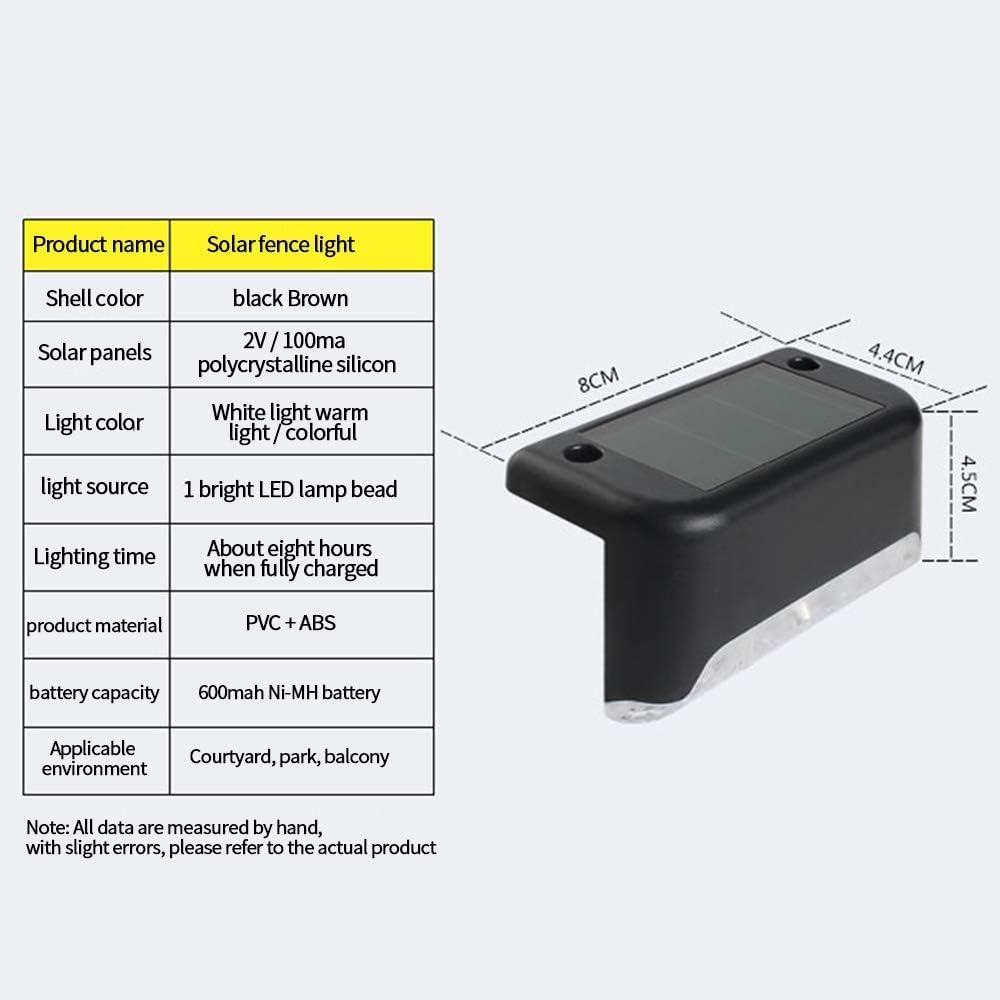 【色を変える】:各ソーラーデッキライトは3ルーメン。暖かい白いLEDは、パティオ、庭、または庭を照らすのに十分です。これは、家族全員が夜に階下に行くのに安全です
