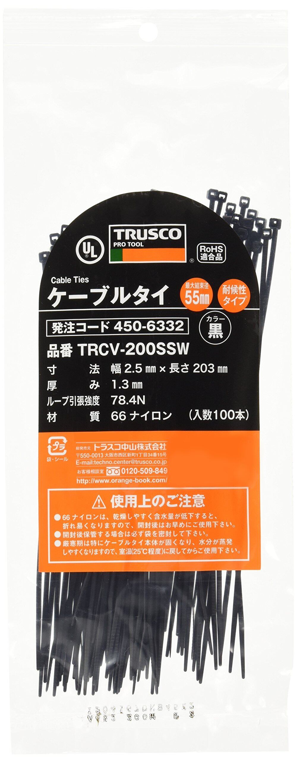 トラスコ中山(TRUSCO) ケーブルタイ幅2.5mm×203mm最大結束φ55耐侯性 TRCV200SSW