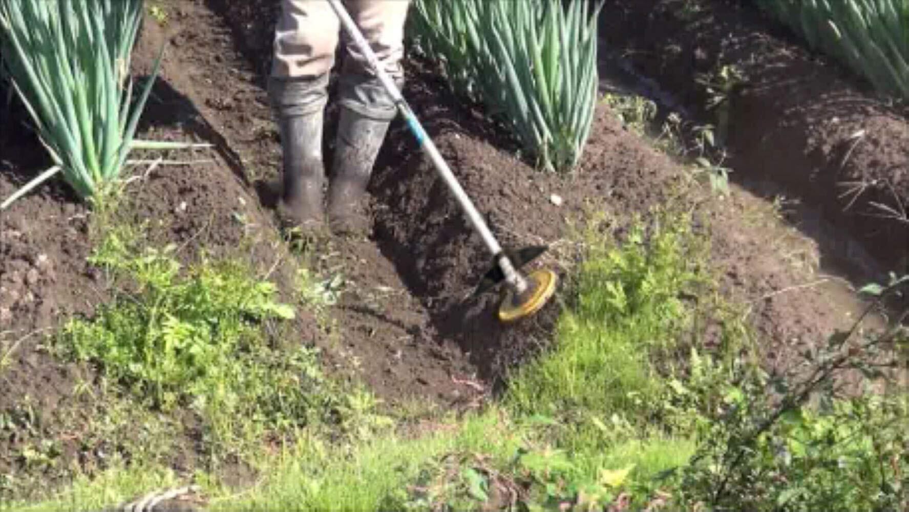 畑の畝を滑らすだけ雑草を削り取って除草。 ・刈払機で簡単、手軽に除草 ・作物・果樹を傷つけない ・従来の畑のシェーバーよりサイズが大きくなり果樹園や公園などの広範囲を効率よく除草 ・腰を曲げずに、楽々立ち作業 ・畑のシェーバーを、除草したい所の地面に着け、滑らす様に除草してください。 地面に貼り付いたしつこい雑草も上から被せる様にすると除草できます。 注意事項: 回転式刈刃なので飛散物は概ね左側へ跳ねます。除草の際は左側面に気を付けてください