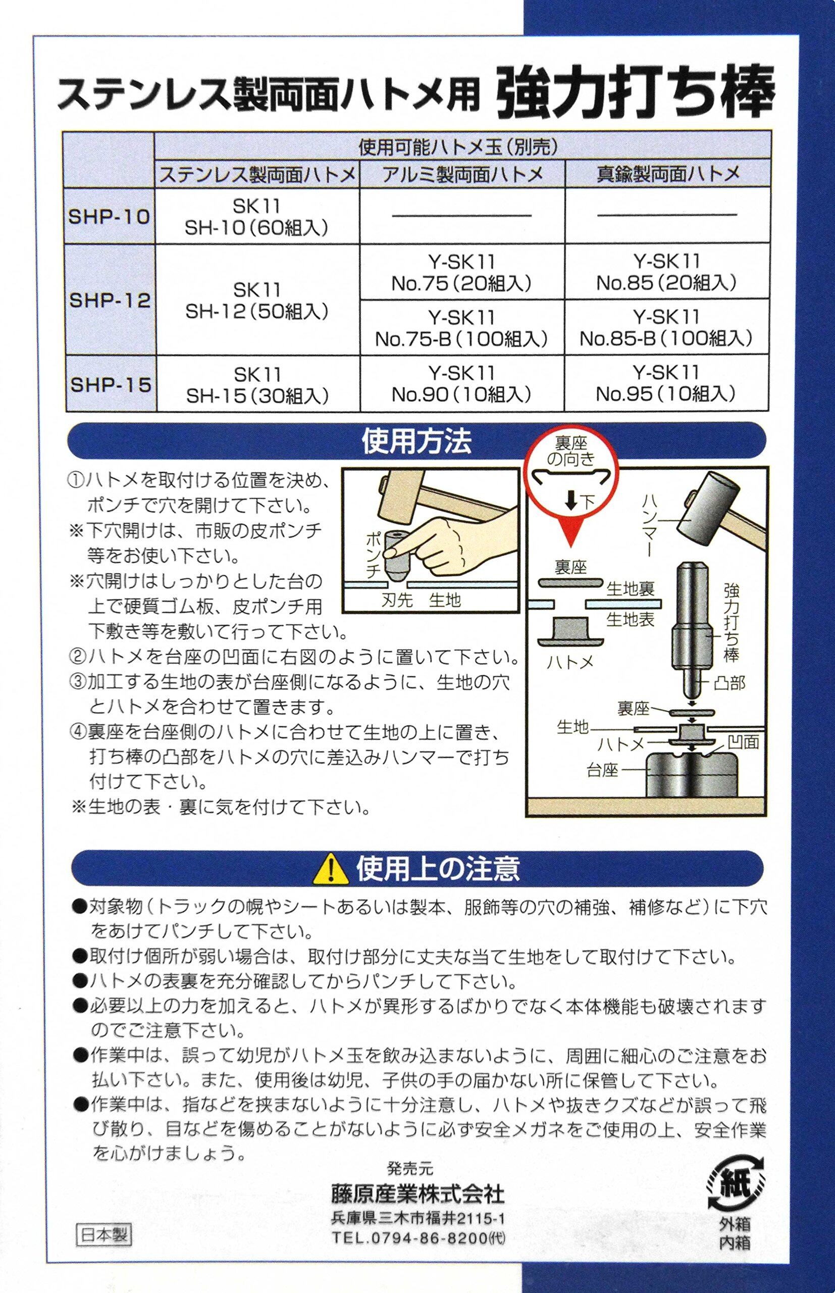 特徴:SK11ステンレス製両面ハトメ12mm(SH-12)用の打ち棒