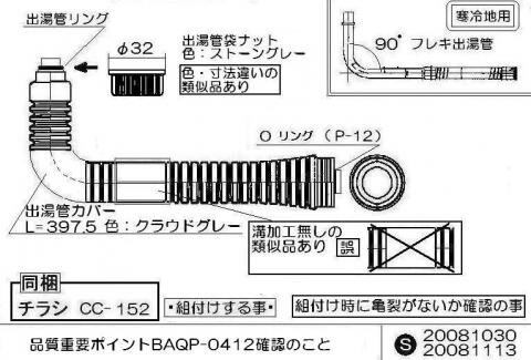 ※出湯管リング(Oリング小)、Oリング(Oリング大)、出湯管袋ナットは付属されています。