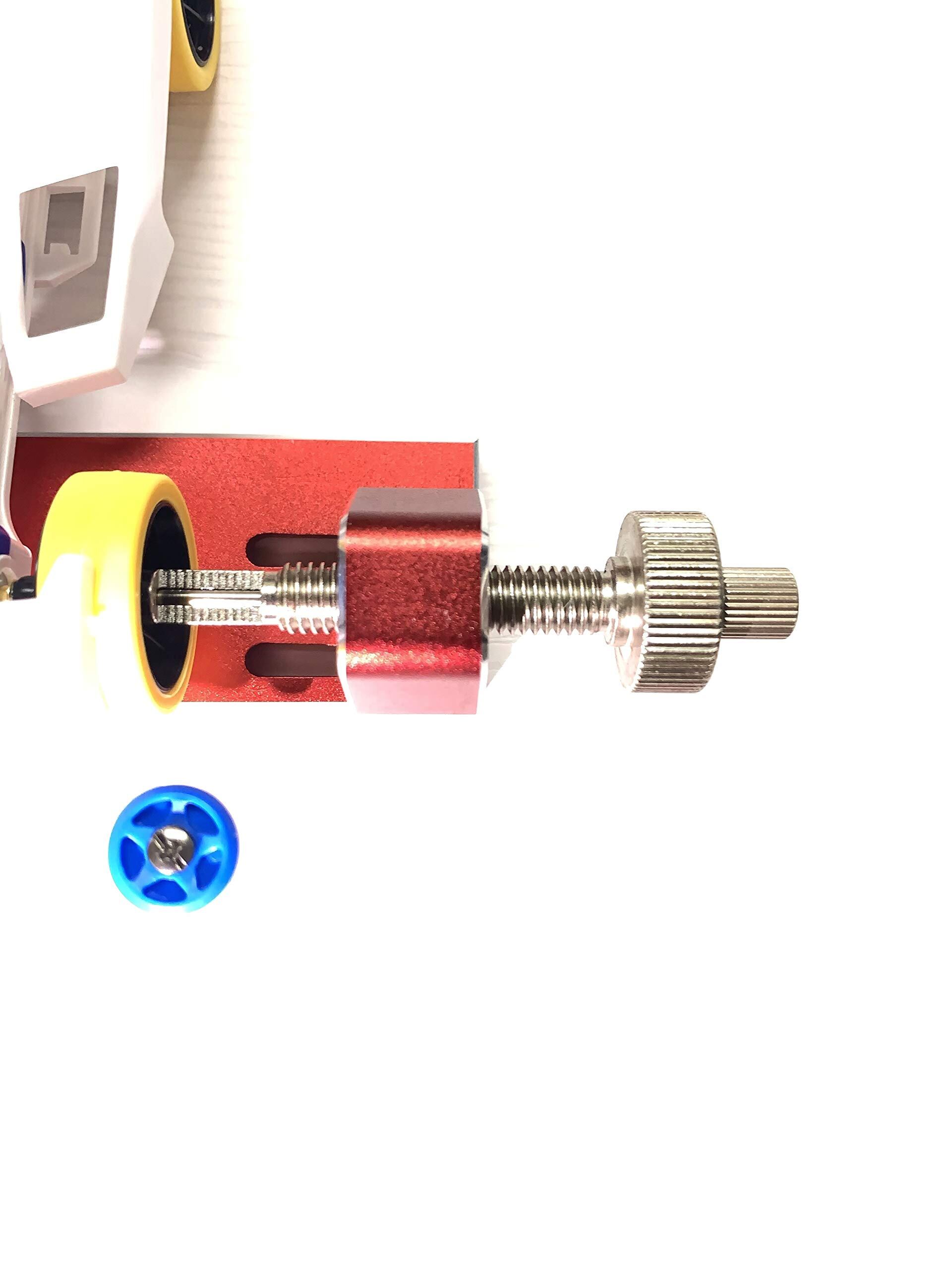 ホイールを高精度で取り付けるツールとなります。 ホイールの取付時の芯ブレ防止やベアリングとの接触が増えすぎて抵抗が増えることを防止することが可能です。 貫通ホイールを取り付け際に左右タイヤの締め込み量を均等に管理するために中心のシャフトを抑える部分の位置を調整できます。 ホイール取付時に少しずつ締め付けることで 精度よくホイールの取付が可能です。