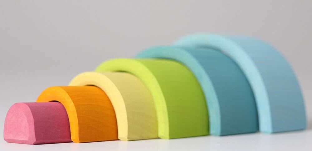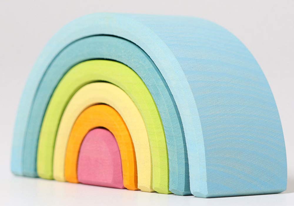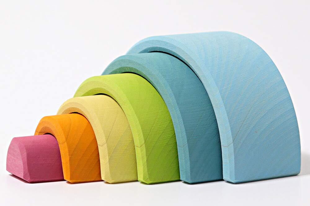 グリムGRIMM'S 玩具 おもちゃ 知育玩具 積み木 インテリア 見立て遊び 虹 レインボー 高さ5.5×幅10.5×奥行4cm 虹色トンネル パステル 小