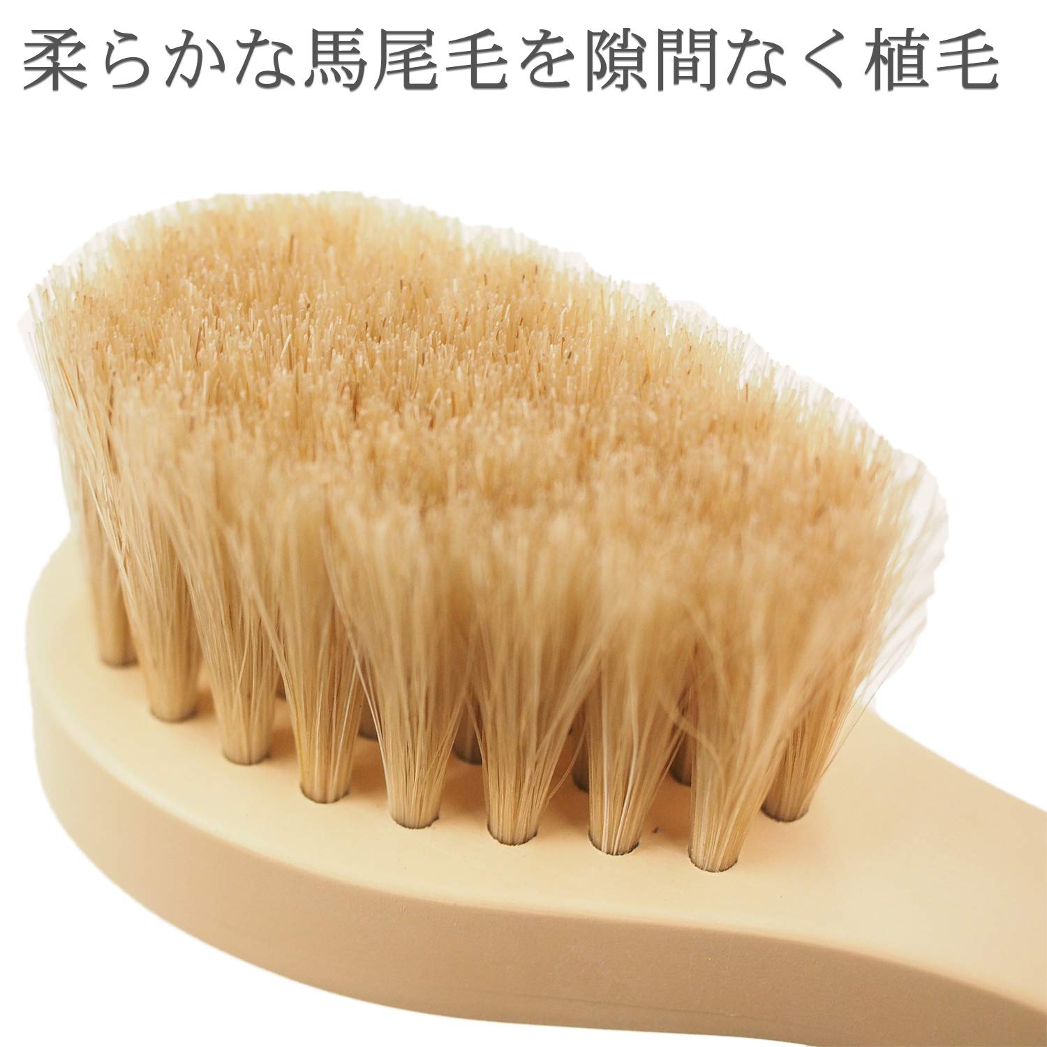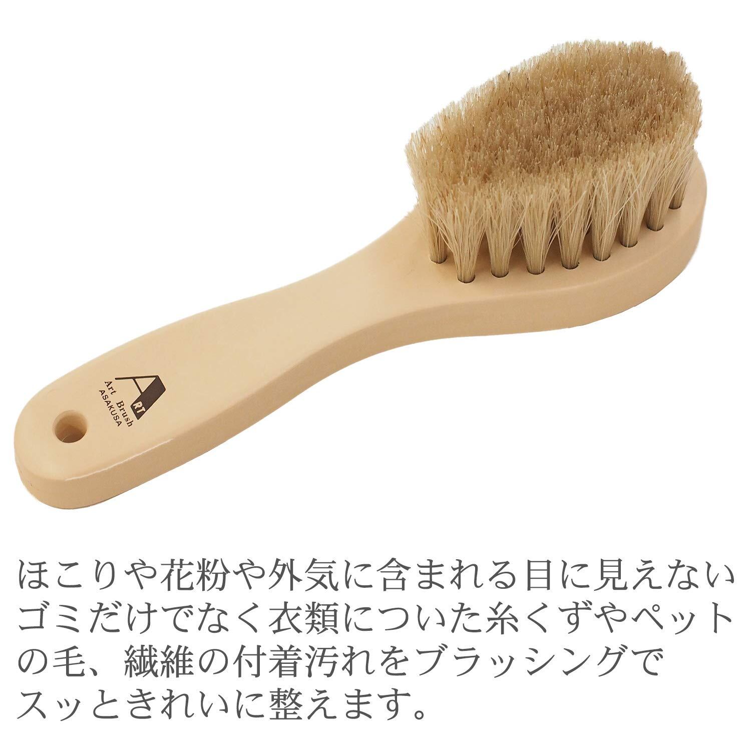 ほこりや花粉や外気に含まれる目に見えないゴミだけでなく衣類についた糸くずやペットの毛、繊維の付着汚れをブラッシングでスッときれいに整えます。小ぶりなサイズですが、しっかりしたハンドルは持ちやすく、柔らかな馬尾毛を隙間なく植毛しました。カシミヤやウール、日常のお洋服のお手入れにお役立て下さい。