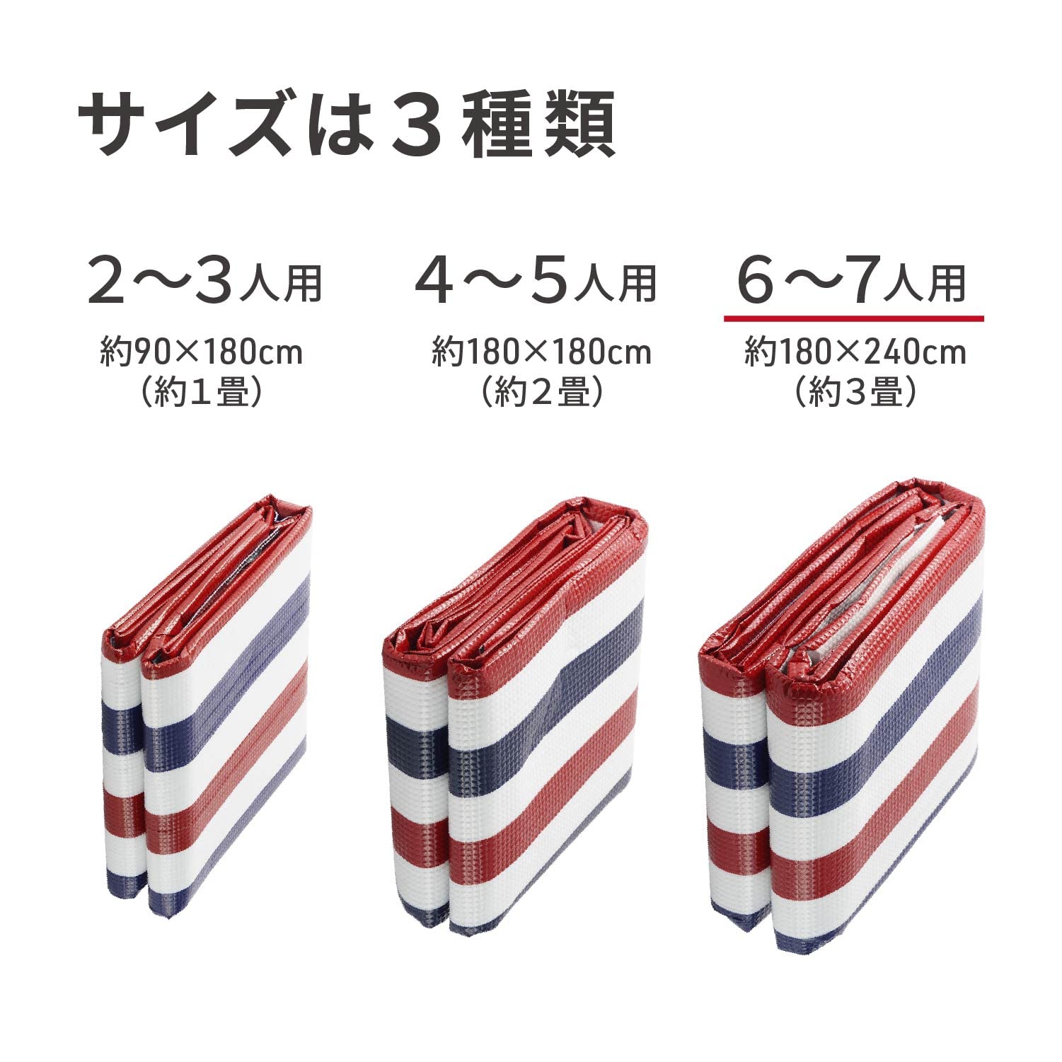 アサヒ興洋 レジャーシート 厚手 6~7人用 180×240cm 3畳 マリンボーダー柄 シートピン付き 3層構造 防水 冷気・湿気防止 やわらかい座り心地 プラージュ 1枚入