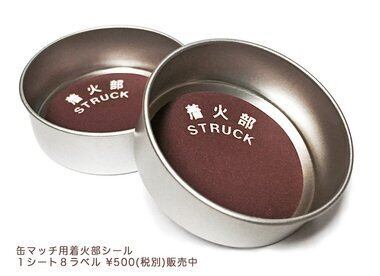 「スチール缶マッチ」は、防湿効果を保持できるよう缶ふたの内側に マッチを擦って火をつける側薬を張り、マッチの軸向きは火のつく頭が下になります。