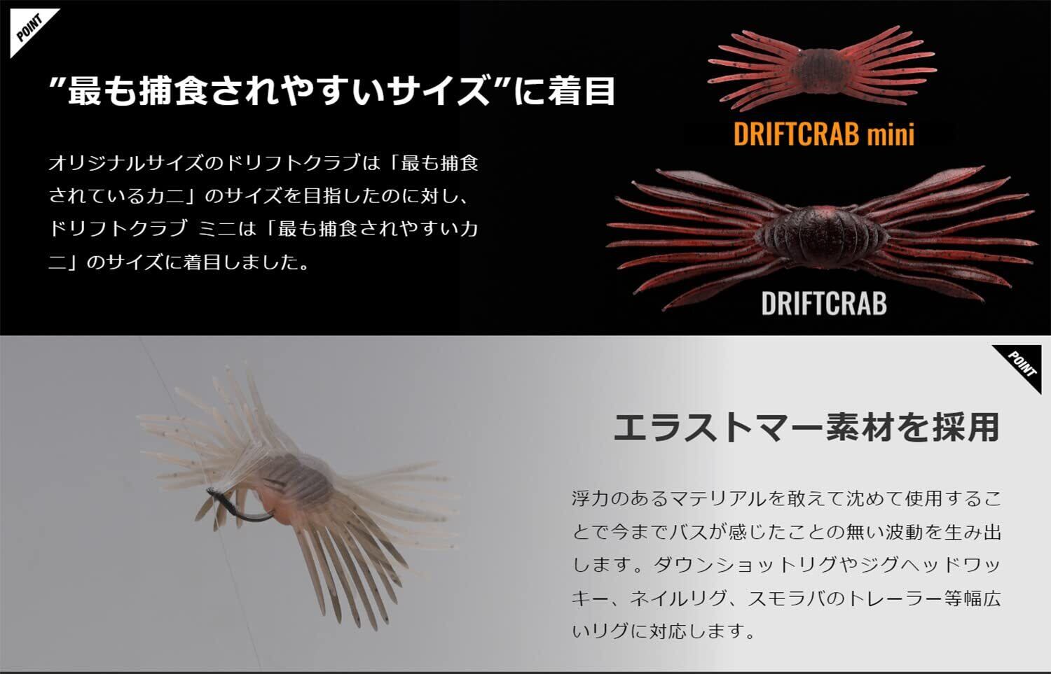エビ、ザリガニに続く第三の甲殻類ベイト“カニ" にフォーカスした革新的ソフトワームより、「最も捕食されやすいサイズ」になった【ドリフトクラブmini】が新登場!
