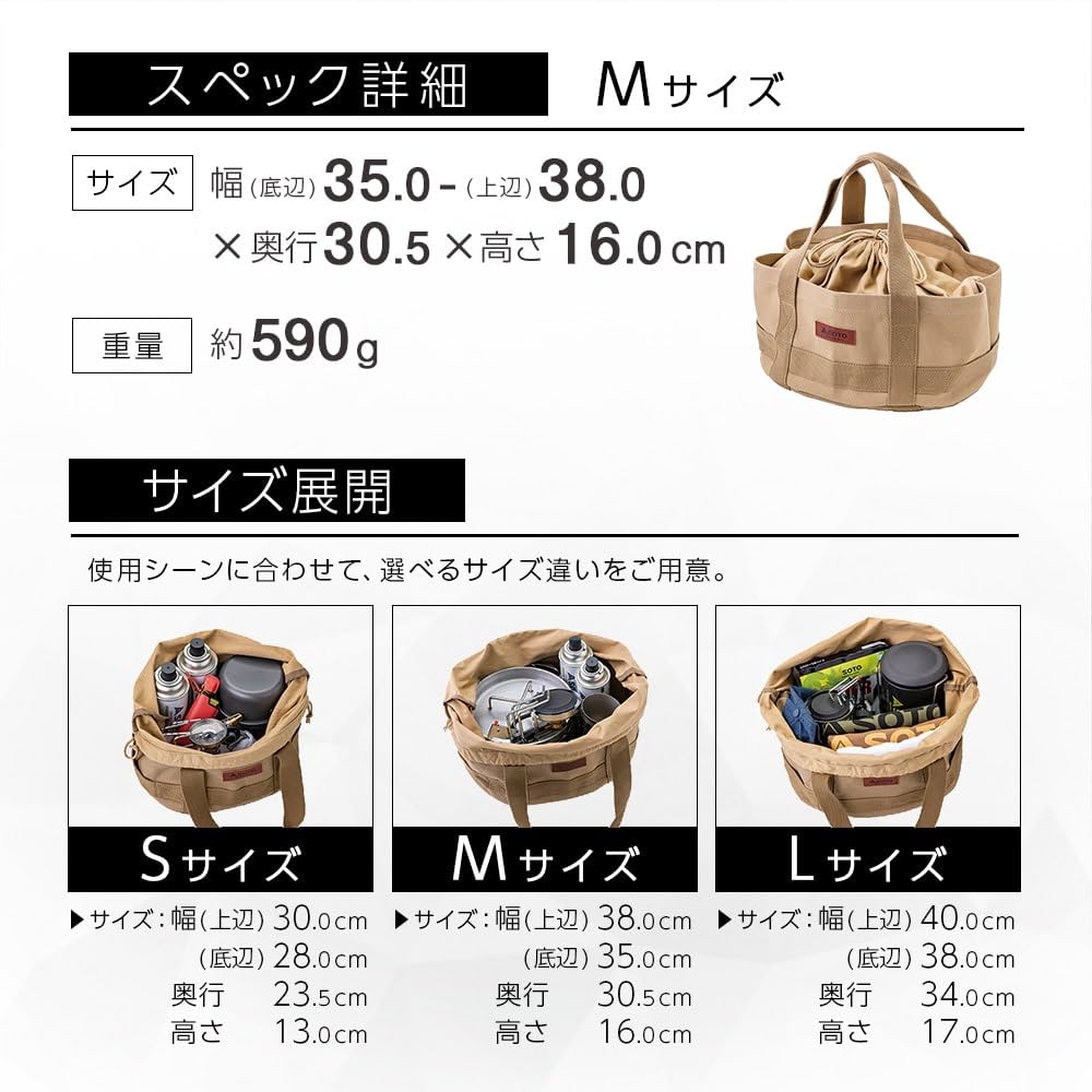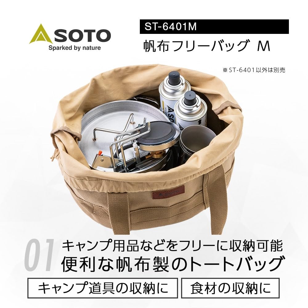 ソト(SOTO) 帆布製 トートバッグ 収納ボックス ギア ケース 丈夫 耐久性 底板付 アウトドア キャンプ 帆布フリーバッグ S/M/L ST-6401 ベージュ
