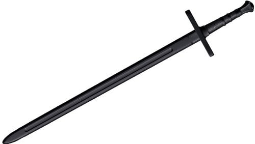 コールドスチールトレーニングソードは、ポリプロピレン製で、長さ、サイズ、重さ、フィーリングの点で本物の剣と酷似しています。木材ほど剛性ではありませんが、事実上割れない、非常に硬く、耐切断性に優れています