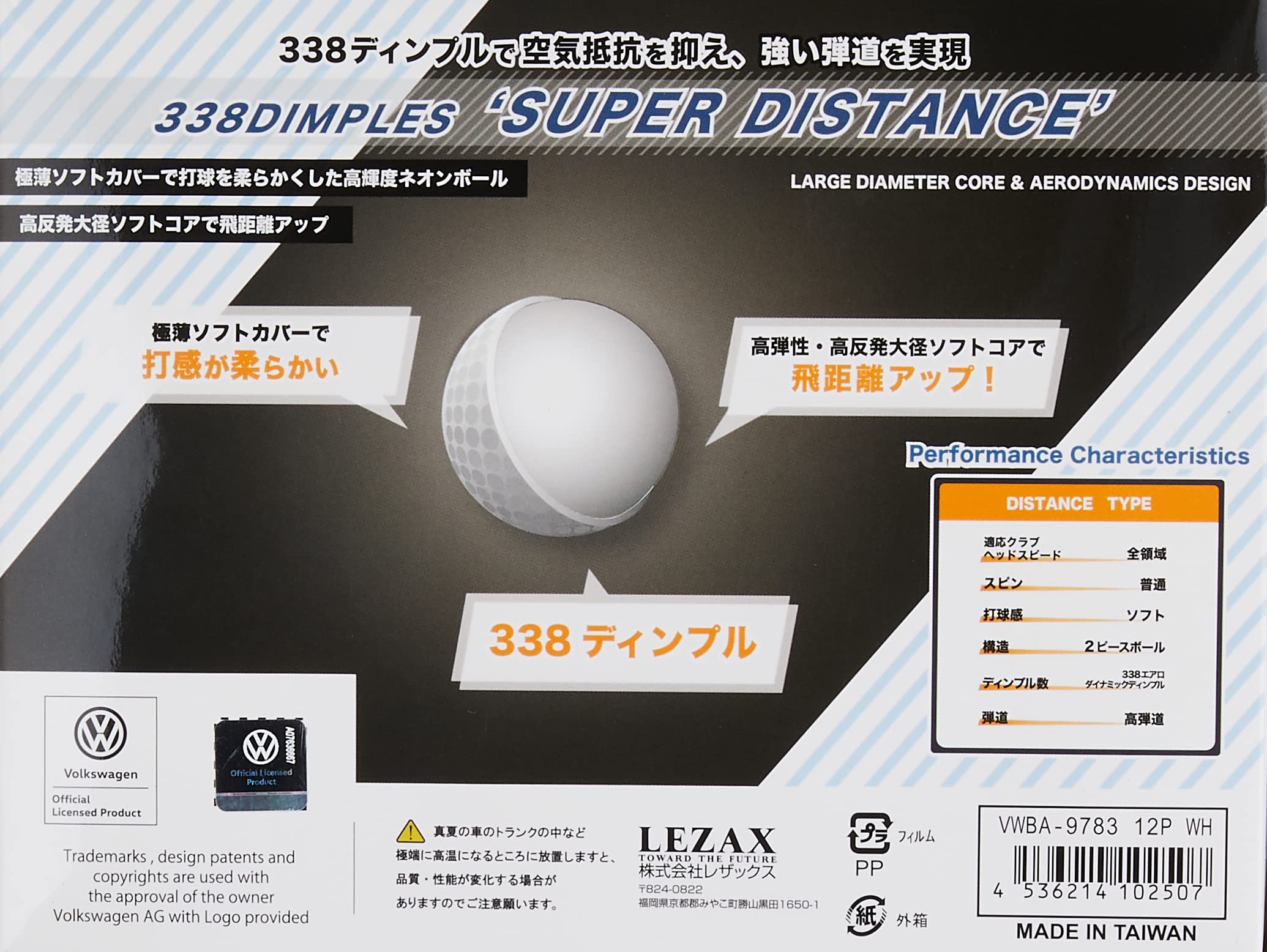LEZAX(レザックス) ゴルフボール Volkswagen ゴルフボール 1ダース(12個入り) VWBA-9783