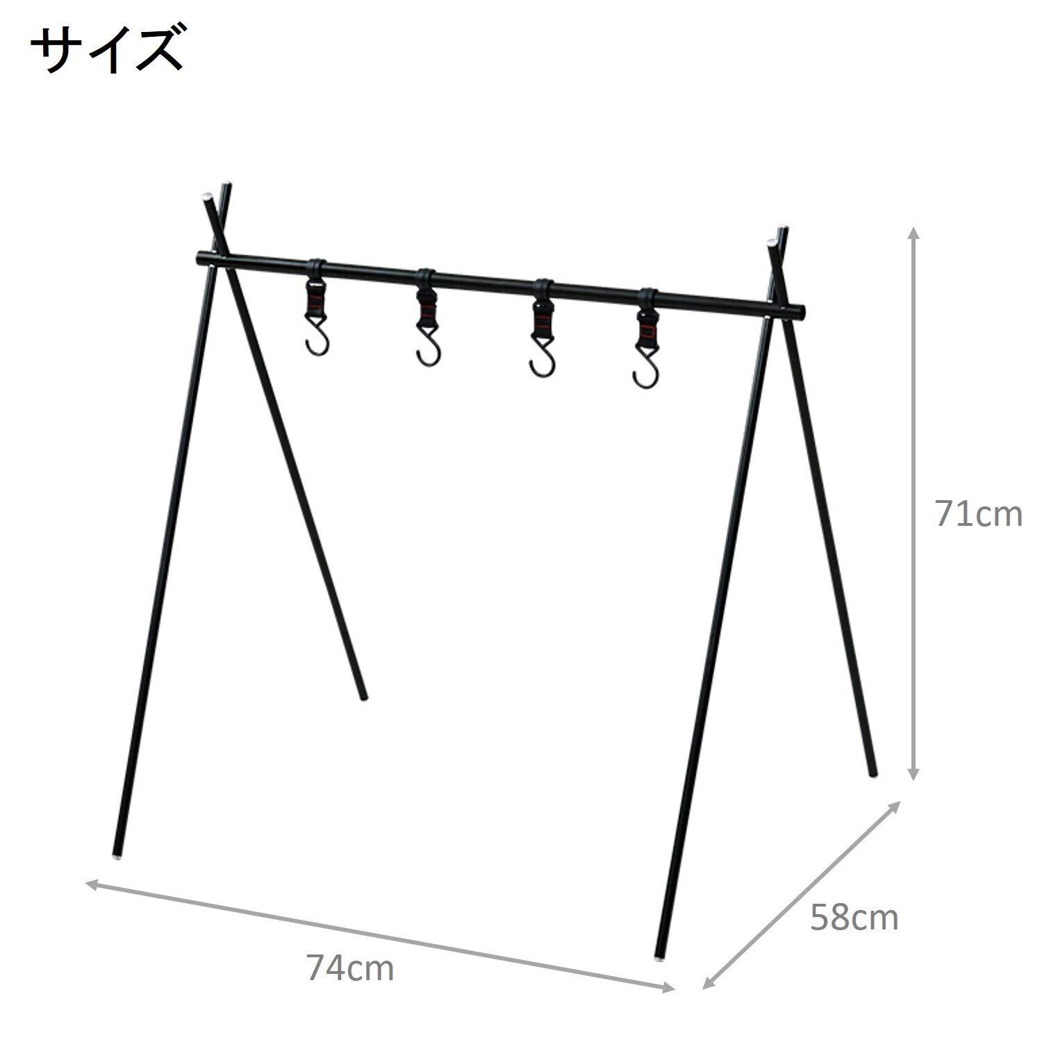 [キャンパーズコレクション 山善] アウトドアハンガーラック OHR-68(BK) ブラック 幅74×奥行58×高さ71cm