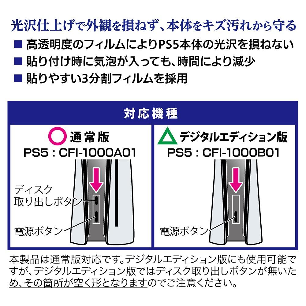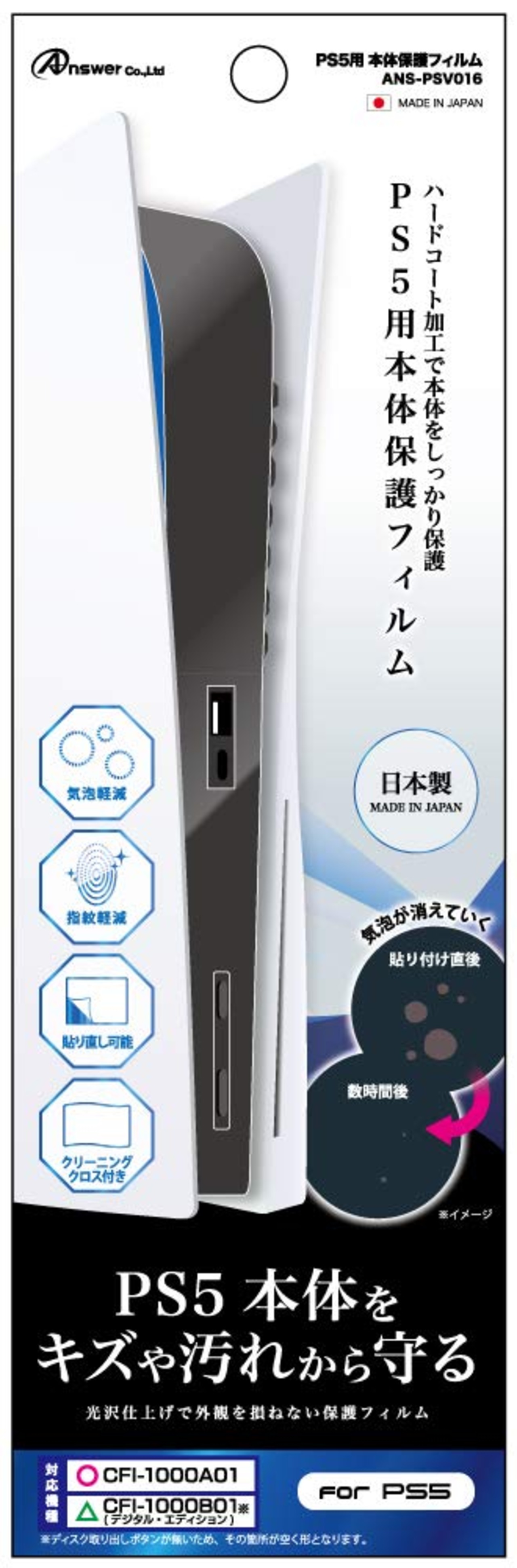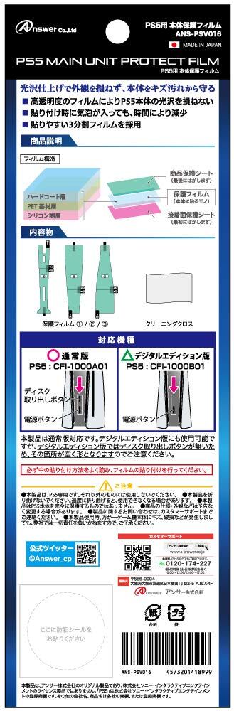 アンサー PS5用本体保護フィルム【光沢面保護/日本製フィルム/キズ防止/ホコリ対策/気泡軽減/指紋防止加工/PS5両エディション対応】