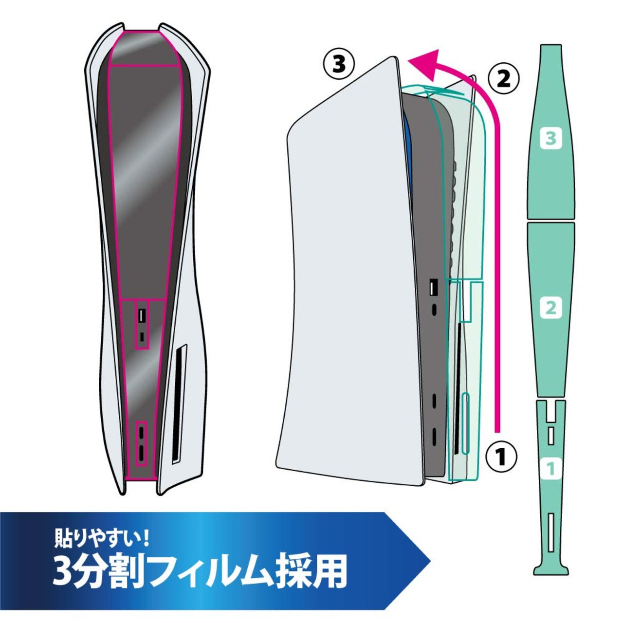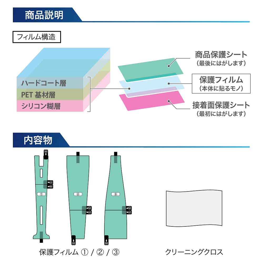 3枚に分かれているフィルムで貼りやすくなっております。