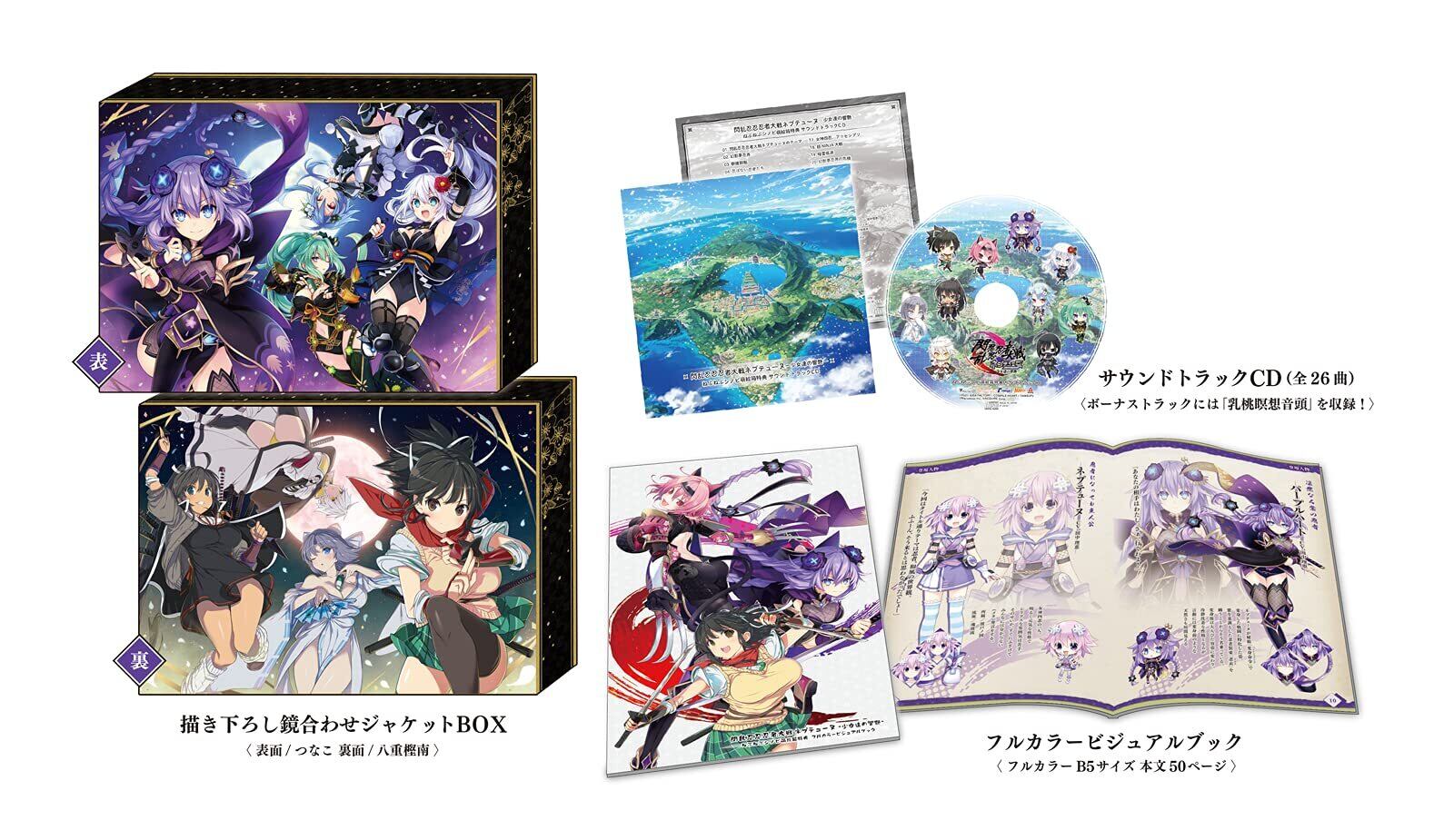 閃乱忍忍忍者大戦ネプテューヌ -少女達の響艶- ねぷねぷシノビ萌絵箱 - PS4 (【特典】つなこ×八重樫南描き下ろし 鏡合わせリバーシブルジャケットBOX、ビジュアルブック、サウンドトラックCD )