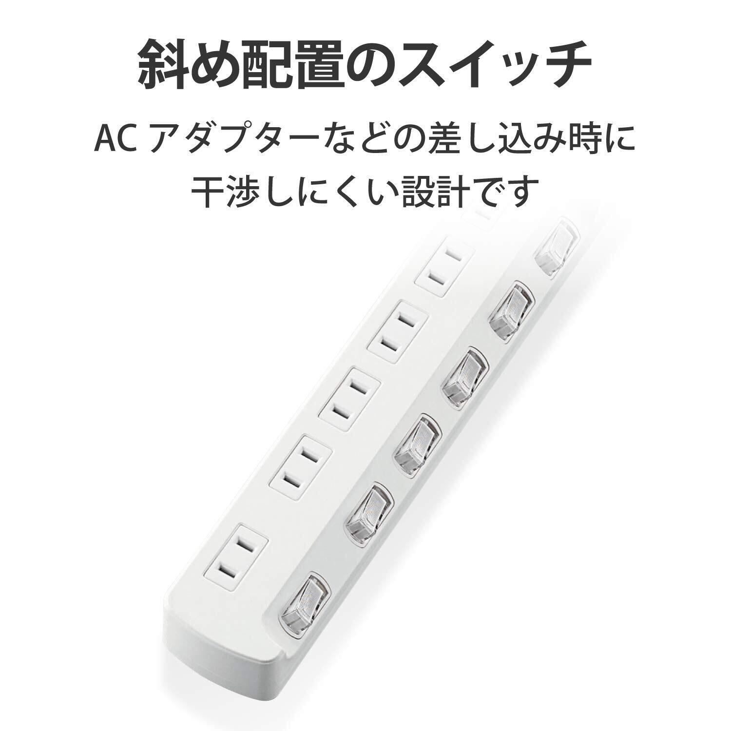 エレコム 電源タップ 個別スイッチ 省エネ ほこり防止シャッター付き スイングプラグ 6個口 2m ホワイト T-E6A-2620WH