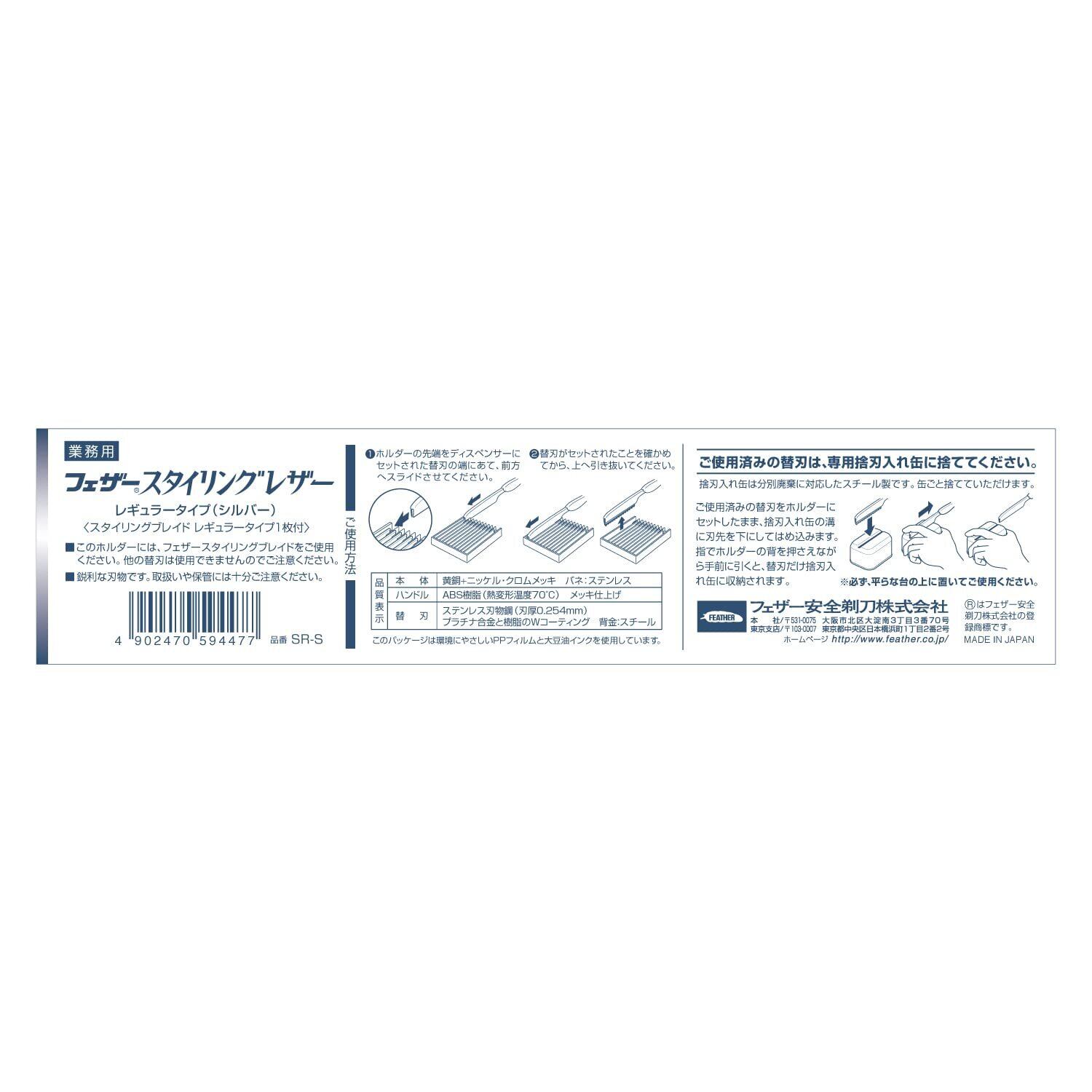 フェザー安全剃刀 スタイリングレザー ショートタイプ レザーカット用 散髪 カット ヘアカット (SRS-S シルバー)