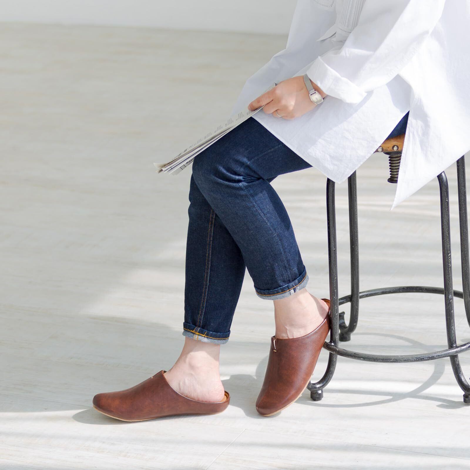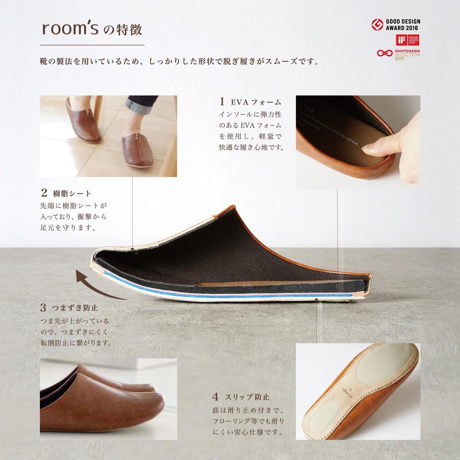 [フロンティア] 歩くを考えたスリッパ room's ルームズ メンズ レディース 室内 来客用 ルームシューズ ダークブラウン M 22.5-24.5cm