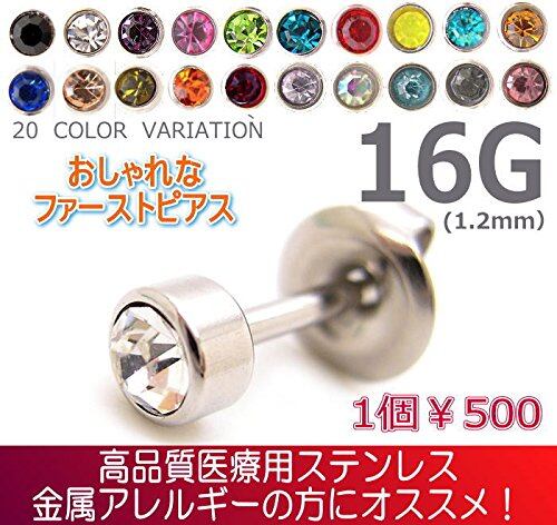 ファーストピアス 16ゲージ アレルギーフリー サージカルステンレス 片売り /5.マスカットグリーン (1-162)
