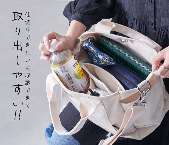 毎日使いたくなる機能性キャンバストートバッグ。 大きすぎず、小さくないので通勤や通学、 ちょっとしたお出かけなどにピッタリ。 たっぷり入る容量と、中の仕切り機能で収納上手◎ ペットボトルを立てたまま入れることができたり、 ファスナー付きの収納スペースではプライバシーを守ってくれます。