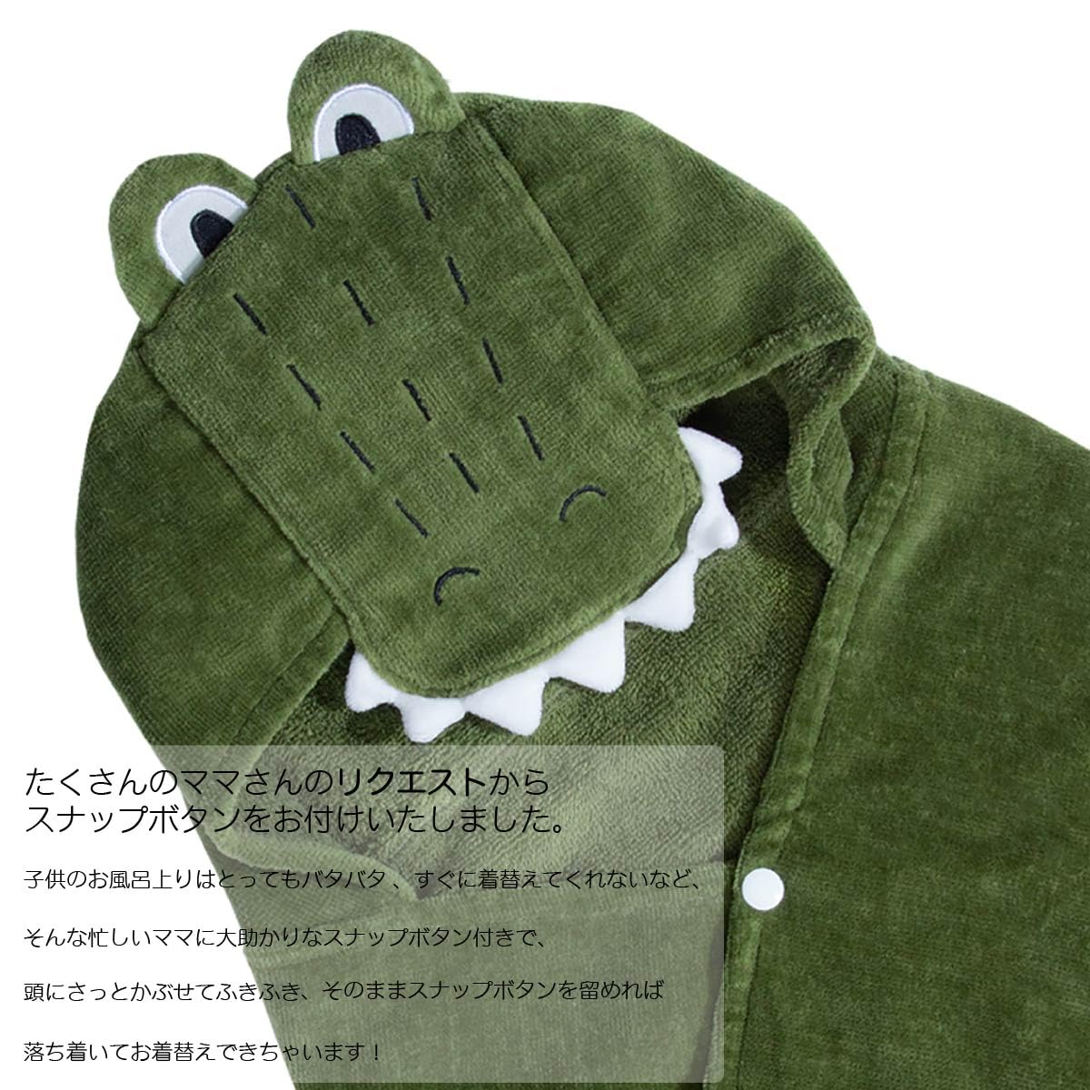 【出産祝い】とっても可愛くて実用性のあるベビーバスタオルです。赤ちゃん・新生児のおくるみからお子様のバスタオルまで長くお使い頂けるので出産祝いにギフトに大変喜ばれています。 【便利な機能】お母さまの声からベビータオルにスナップボタンを付けました。これで風呂上がりに家の中を走り回ってもはだけないので安心。また頭部にフックがあるのでそのまま引っ掛けられば乾燥にも役立ちます。 【可愛いデザイン】男の子にも女の子にも人気なしっぽ、お鼻、牙、角・・・など可愛いデザインがいっぱい!赤ちゃんもパット羽織って大変身に大喜び。SNS映えも! 【使い方色々】ベビー用おくるみ、バスローブとしてはもちろん、プール上がりや海でも大活躍!夏の暑い日は日よけとしても役立ちます。 【安心・安全】「ホルマリン検査」「アゾ染料検査」「堅牢度検査」全て日本規格合格済。お子様に安心してご使用いただけます。