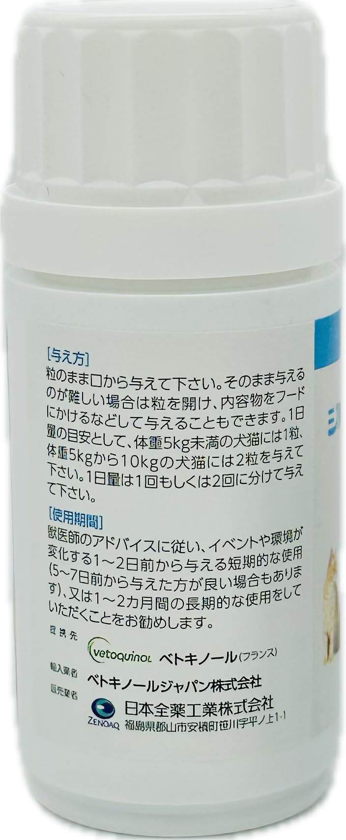 環境変化やいつもと違うシチュエーションにおいてスムーズに対応していくために短期的、長期的に使用できる犬猫用健康補助食品です。