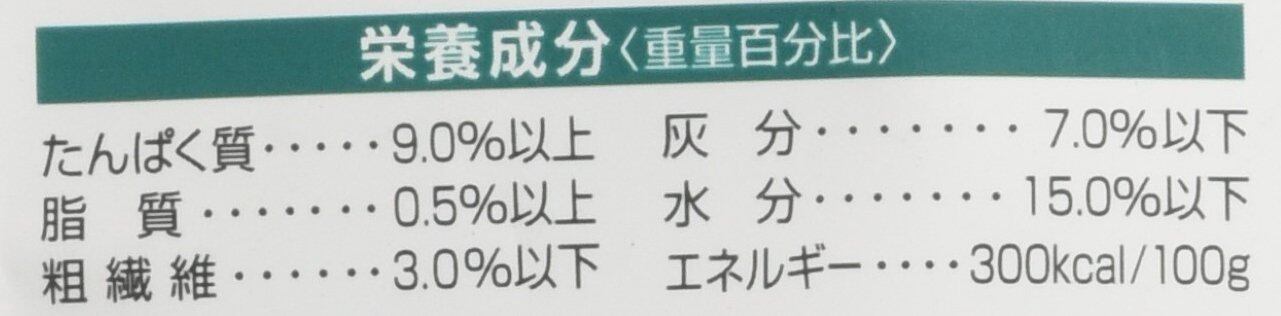 【対象年齢】1歳から【内容量】200g カロリー:300kcal/100g 【栄養成分】たんぱく質9%以上、脂質0.5%以上、粗繊維3%以下、灰分7%以下、水分15%以下 【サイズ】16×4×25cm