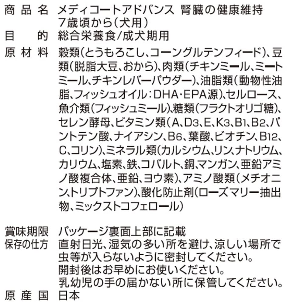 メディコート アドバンス 腎臓の健康維持 7歳頃から【国産/アルミ小分け】 1kg(250g×4)