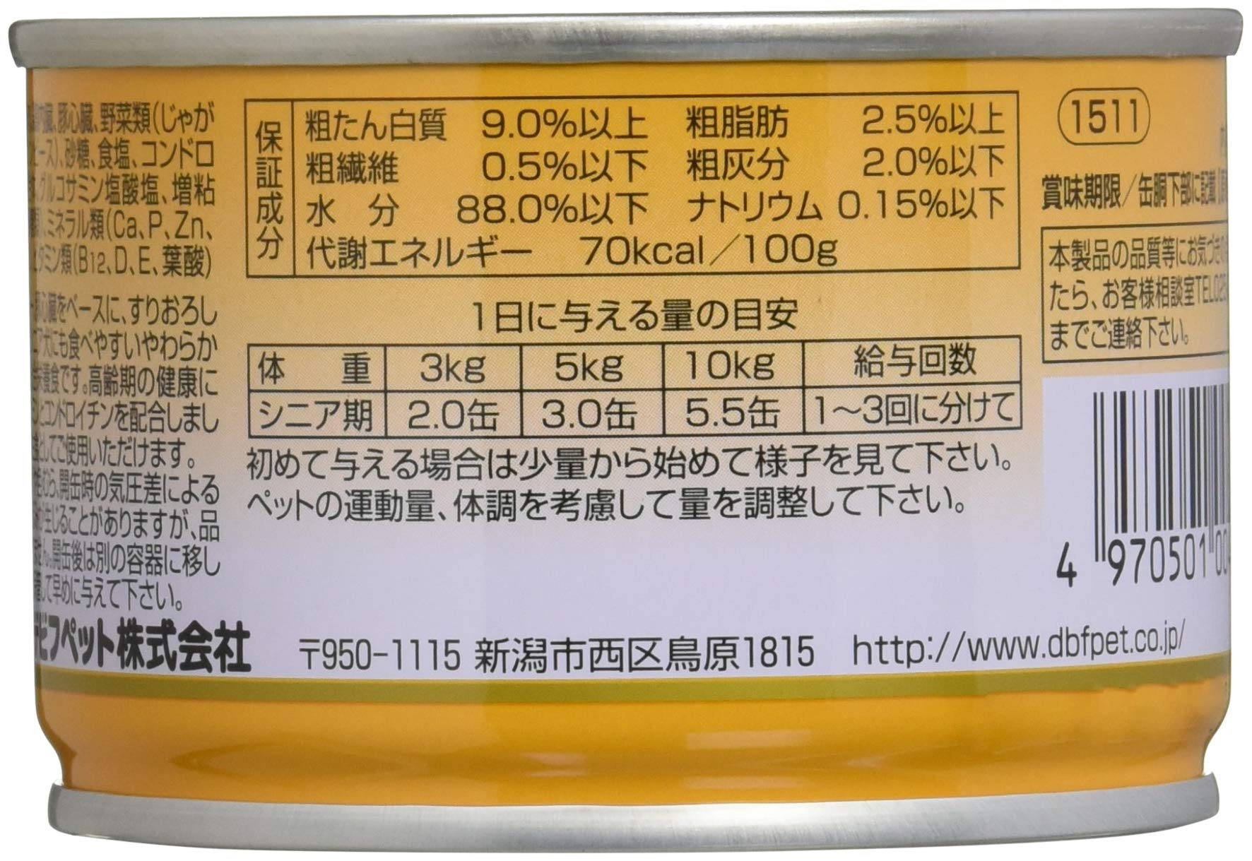 鶏胸肉、鶏レバー、豚心臓をベースにすりおろした野菜を加えシニア犬に食べやすい軟らかさに仕上げた総合栄養食です。