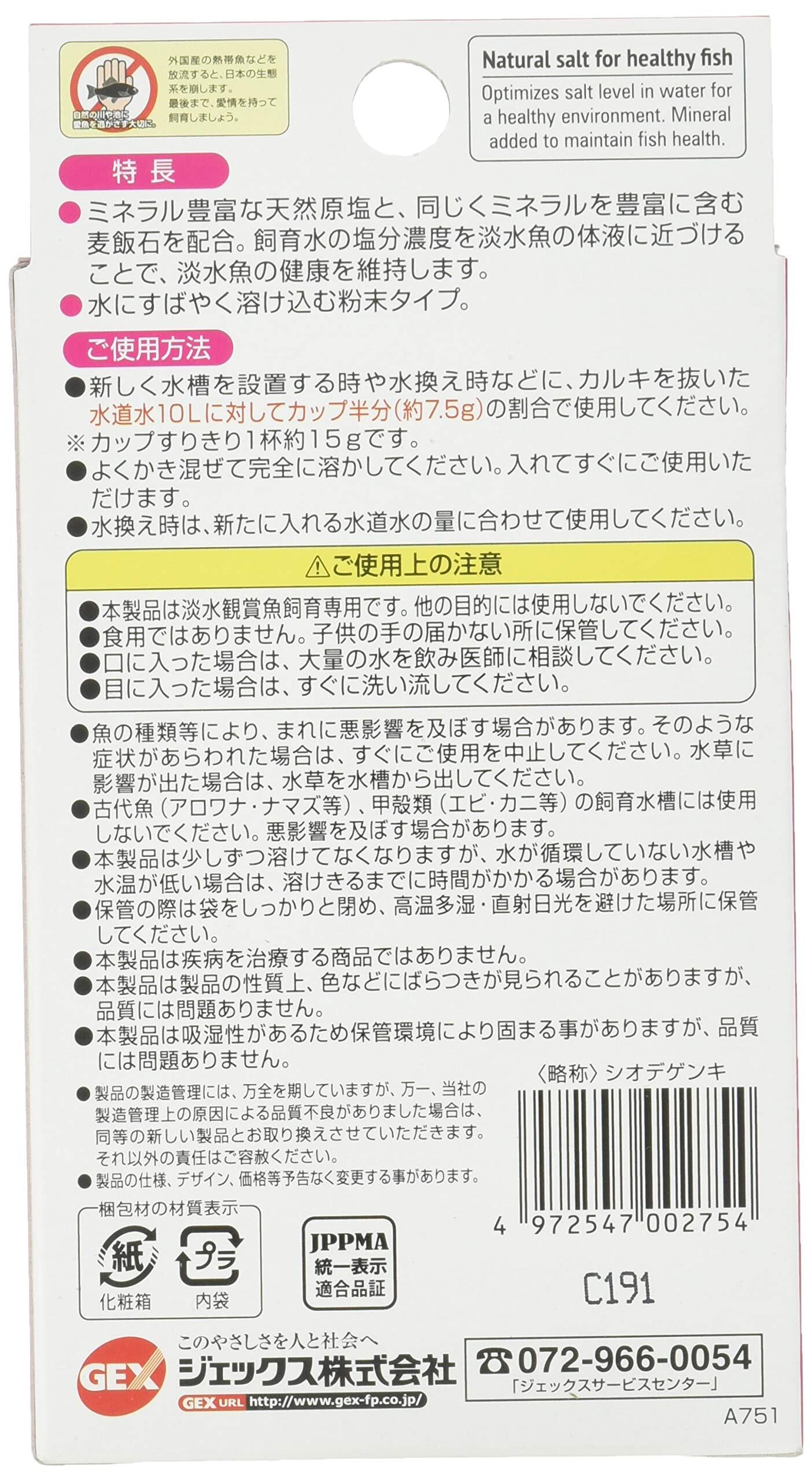 ミネラル豊富な天然原塩が主成分、塩で元気を水槽の水に入れる事で魚の体調を整えることができます。