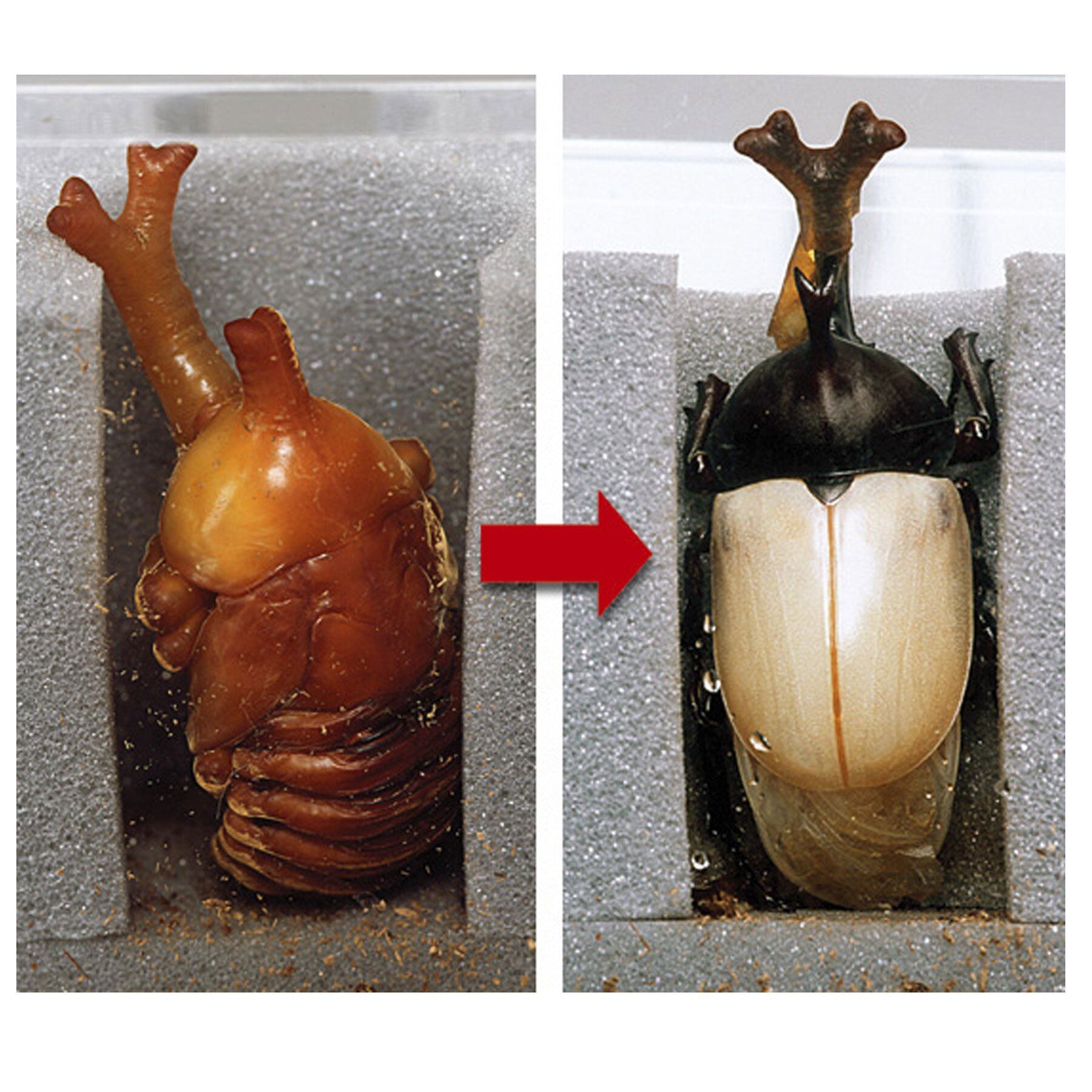 国産カブト虫専用の人工蛹室。両面で合計3匹を収納できます。前蛹もOK。羽化不全を起こしやすい大型個体や、前蛹・サナギの蛹室を壊してしまったときなど、これまであきらめかけていた状況からの羽化を実現するウレタン製人口蛹室です。